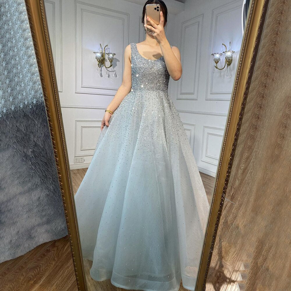 Arabic Red A Line Luxury Crystal Beaded Sexy Dubai Evening Dresses Gowns 2025 For Women Wedding Party LA70232A