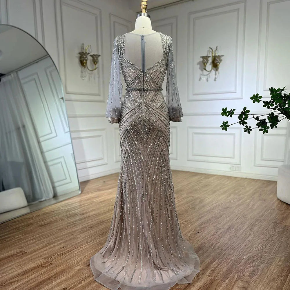 Arabic Silver Nude Elegant Mermaid Beaded Luxury Dubai Evening Dresses Gowns For Women Wedding Party 2025 LA72017