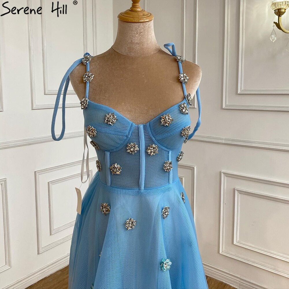 Blue Diamond A-line Evening Dresses Gowns 2025 Spaghetti Srtap Sexy Ankle Length For Women Party LA70862