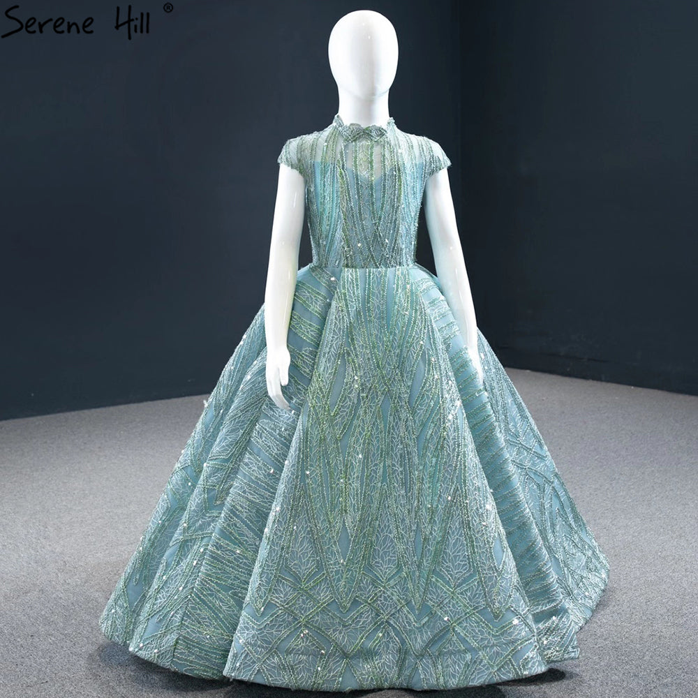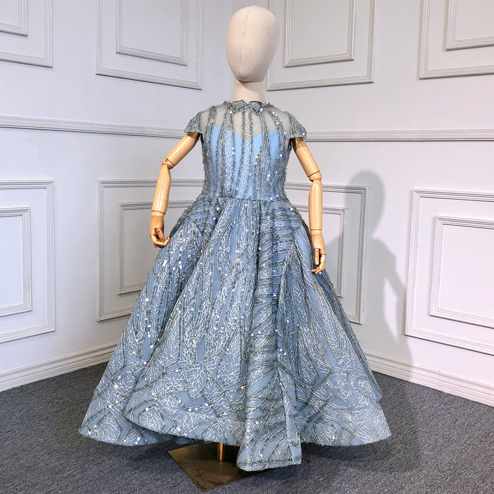 Clear Water Blue Sparkle Flower Girl Dresses Cap Sleeves For Party And Wedding 2025 HTA0051
