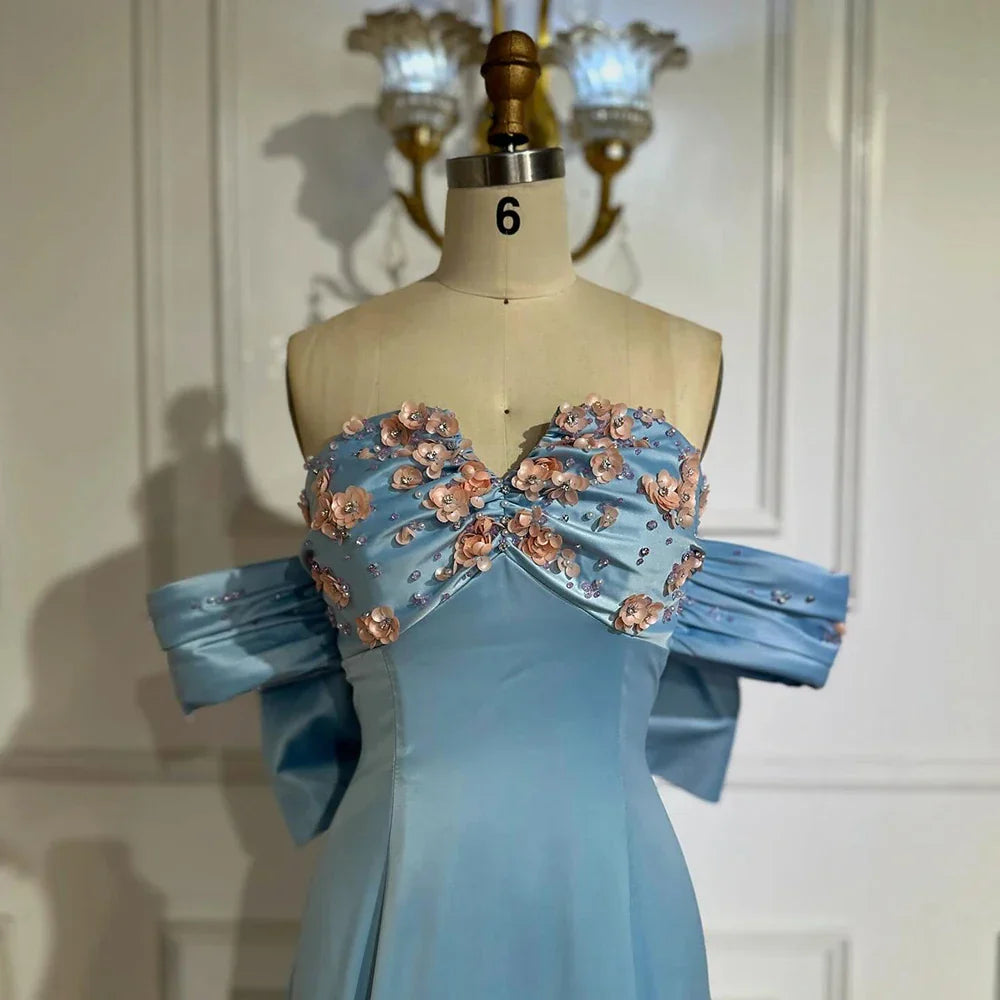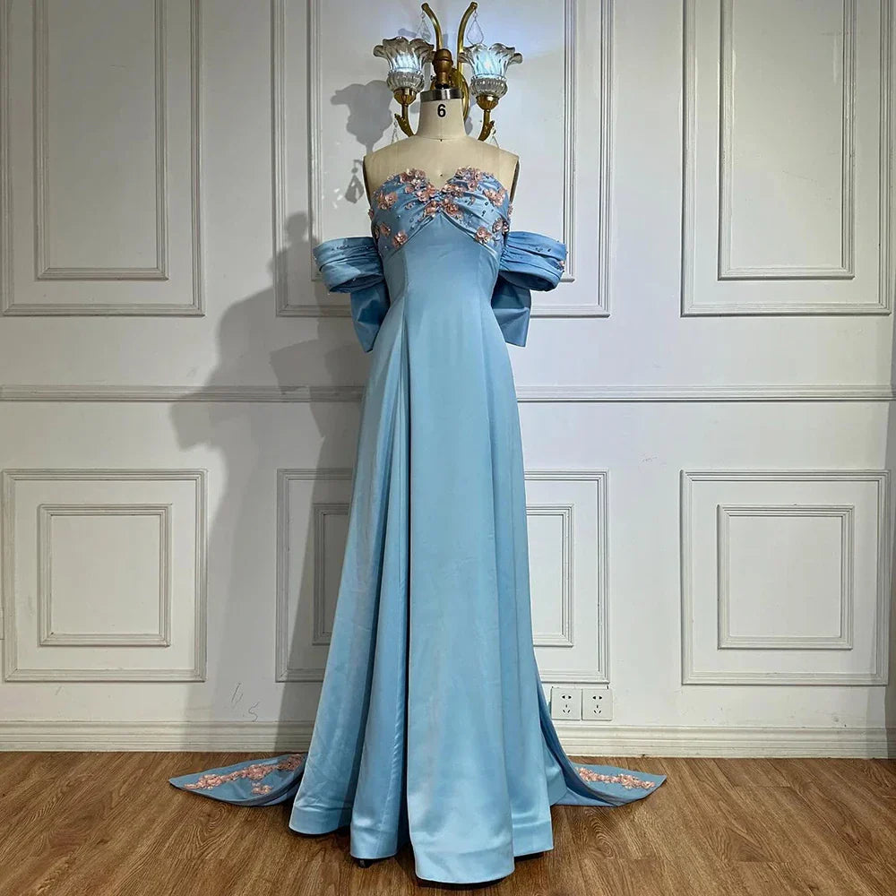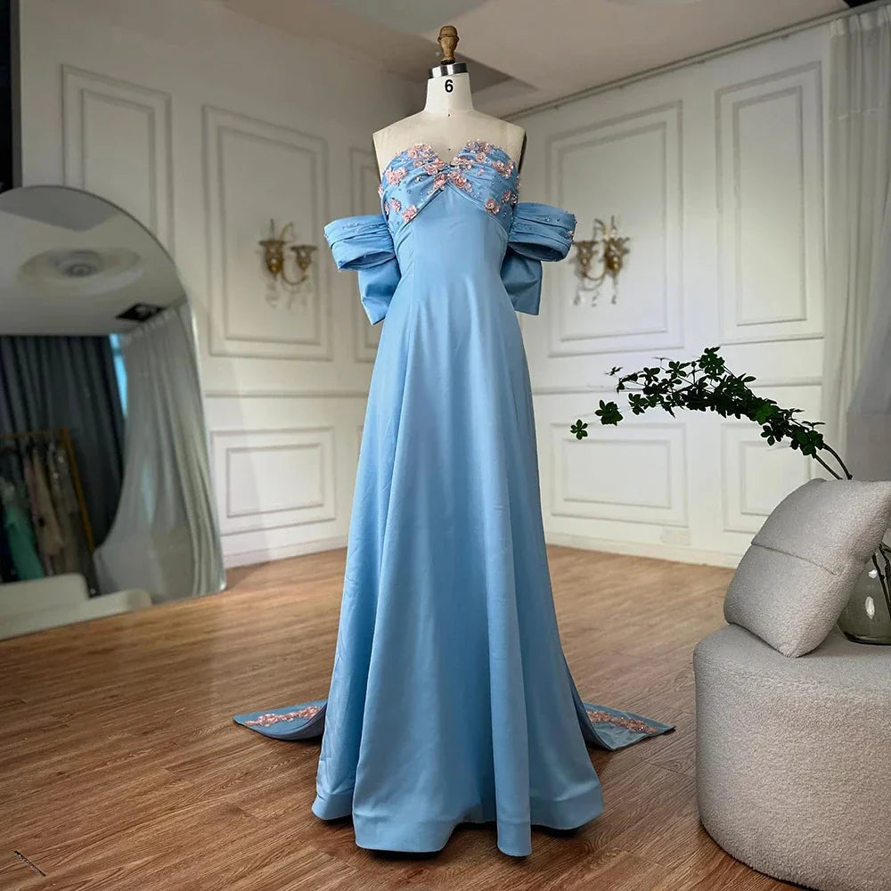 2025 Arabic Strapless Blue Beaded A-Line Saudi Evening Gown for Formal Occasion LA72792