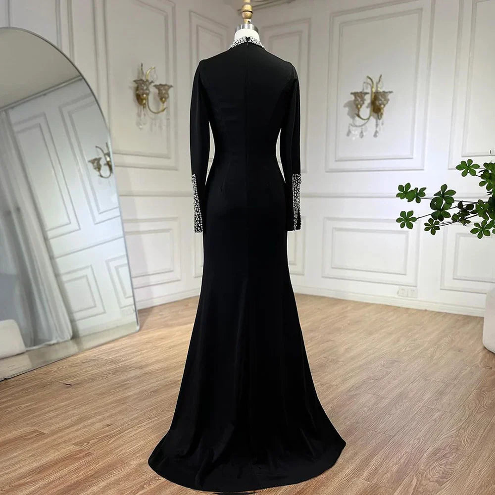 Black Satin Split Mermaid Luxury Evening Dress Gown LA72476
