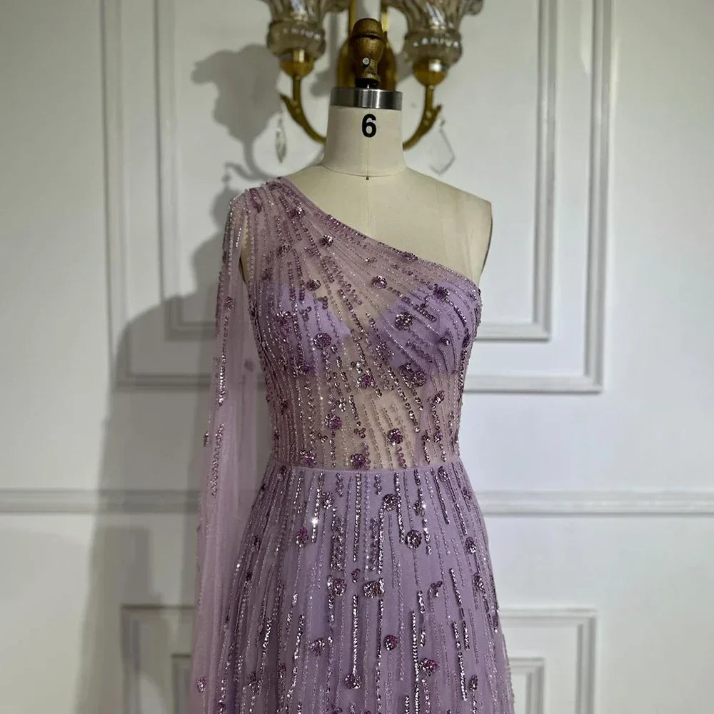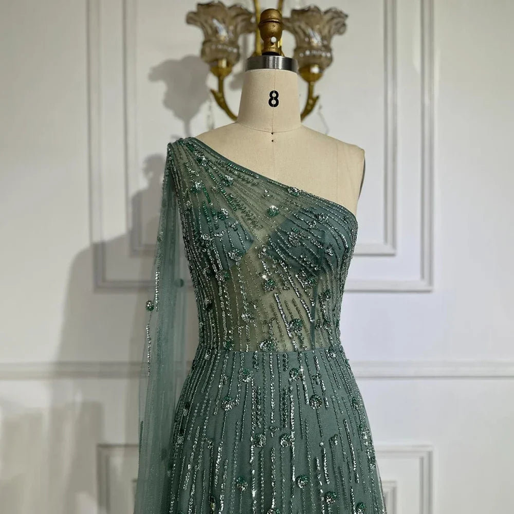Dubai Green A Line One Shoulder Cape Sleeves Beaded Luxury Evening Dresses Gowns for Women Wedding Party LA72503
