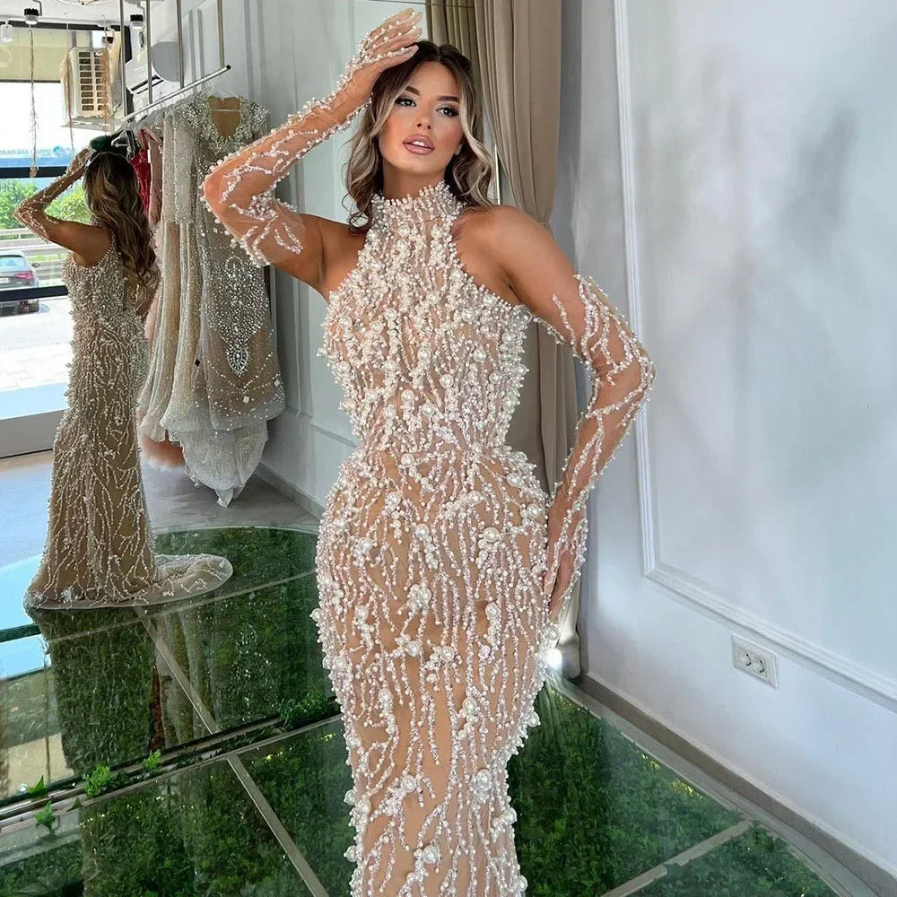 The intricate beading adds a touch of luxury to this elegant dress. while the matching gloves complete the look. Perfect for any formal event. this dress will make you feel confident. beautiful. and stylish.
