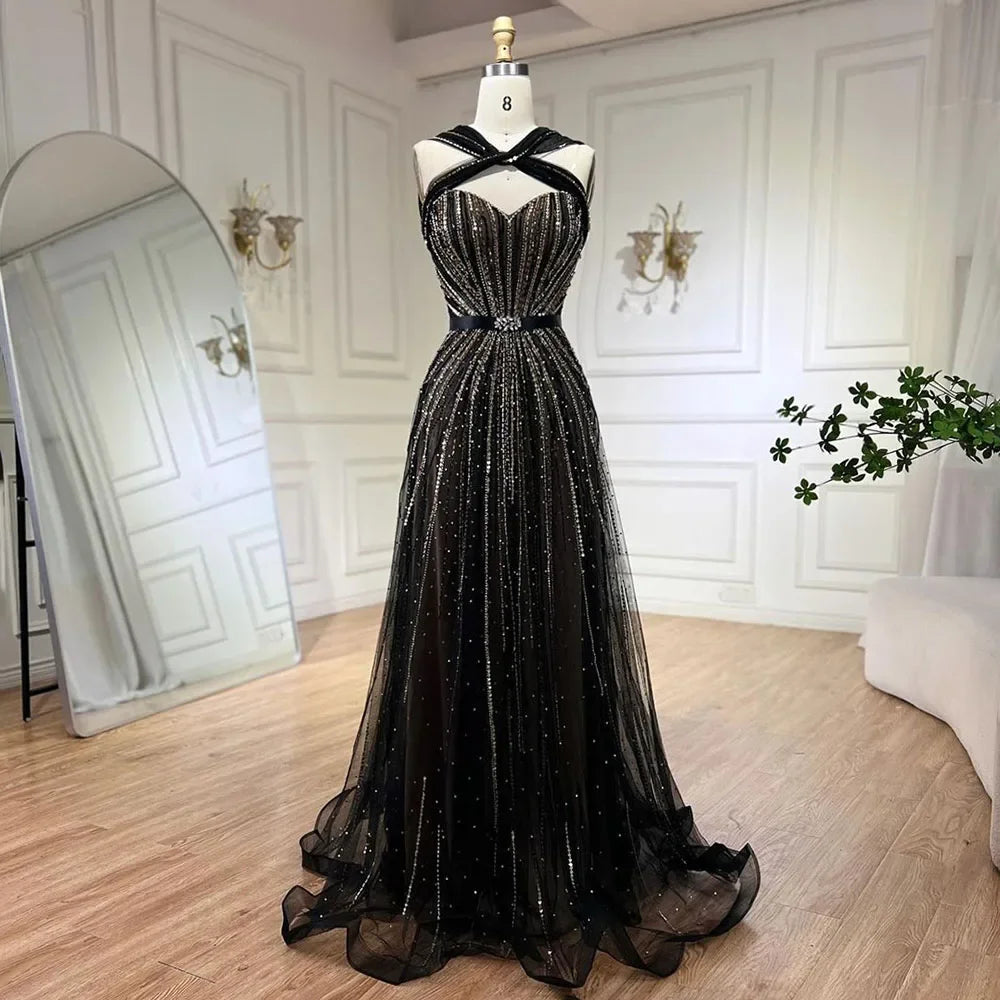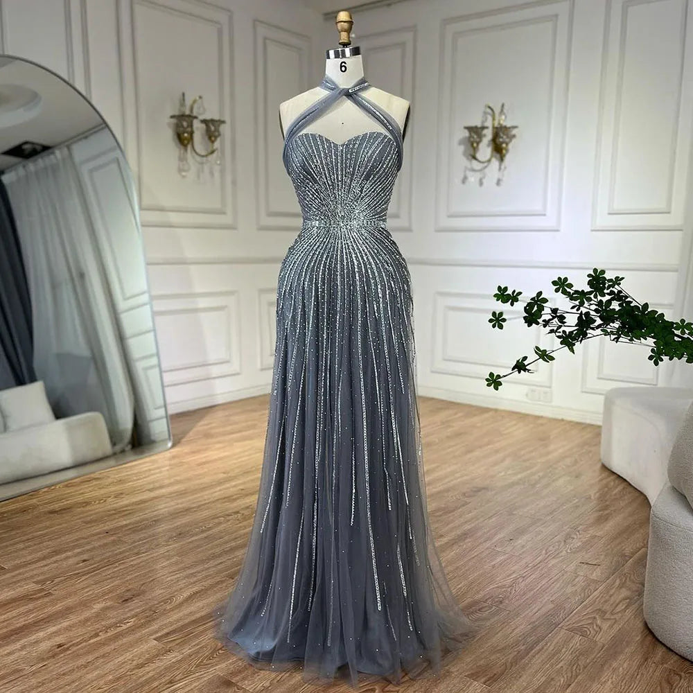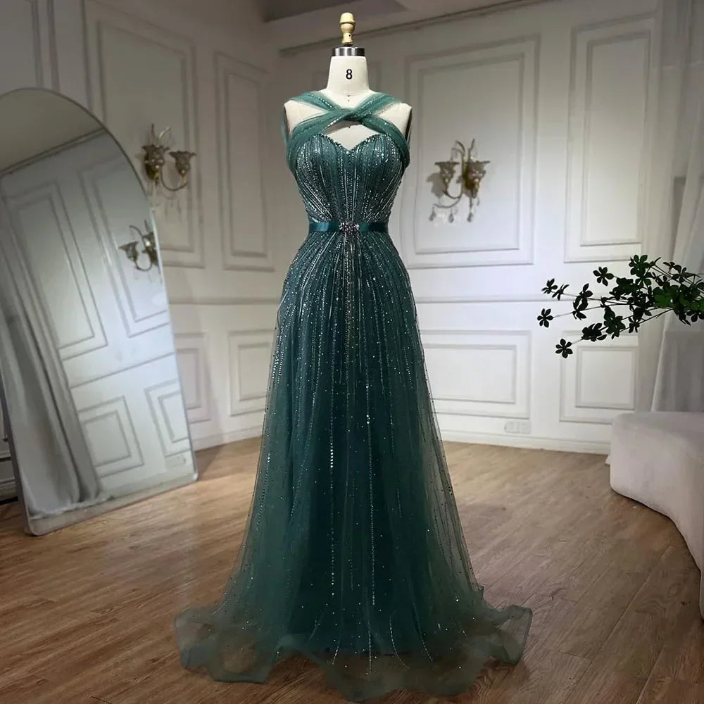 Dubai Turquoise Spaghetti Strap Mermaid Luxury Beaded Evening Dresses Gowns For Women Wedding Party 2025 LA72322