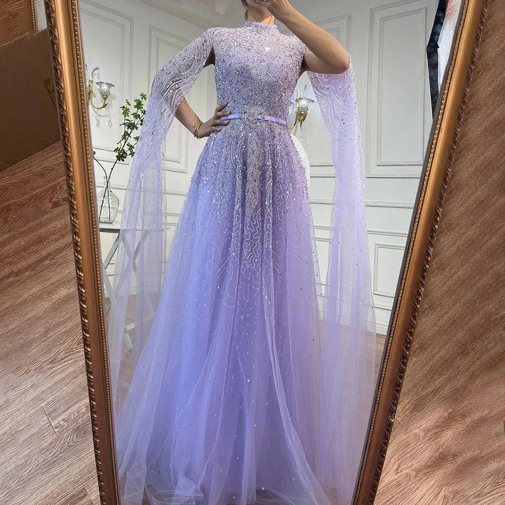 Adorned with beautiful cape sleeves and a high neck. this dress showcases the perfect blend of modern and traditional styles. Perfect for any special occasion. be the star of the night in this stunning gown.