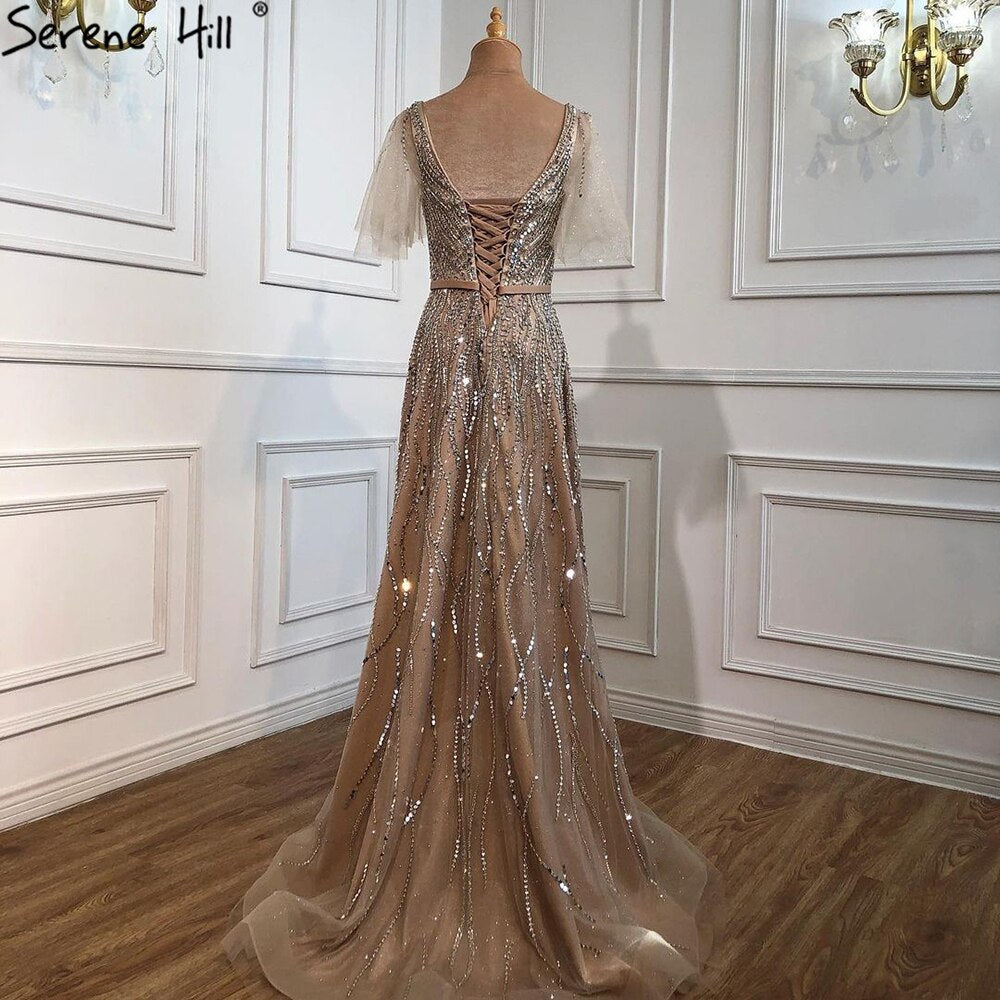 Gold Luxury A-Line Evening Dresses Gowns 2025 Beaded Short Flare Sleeves For Women Party LA70824