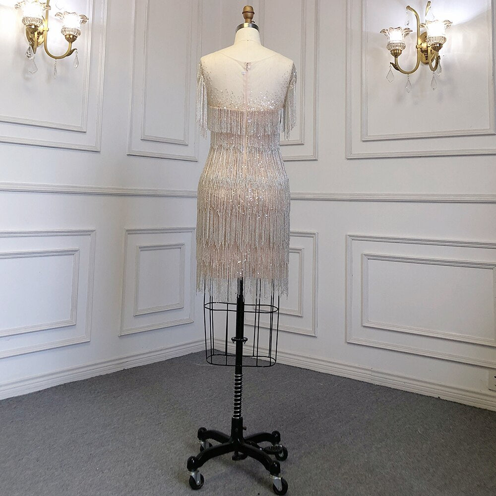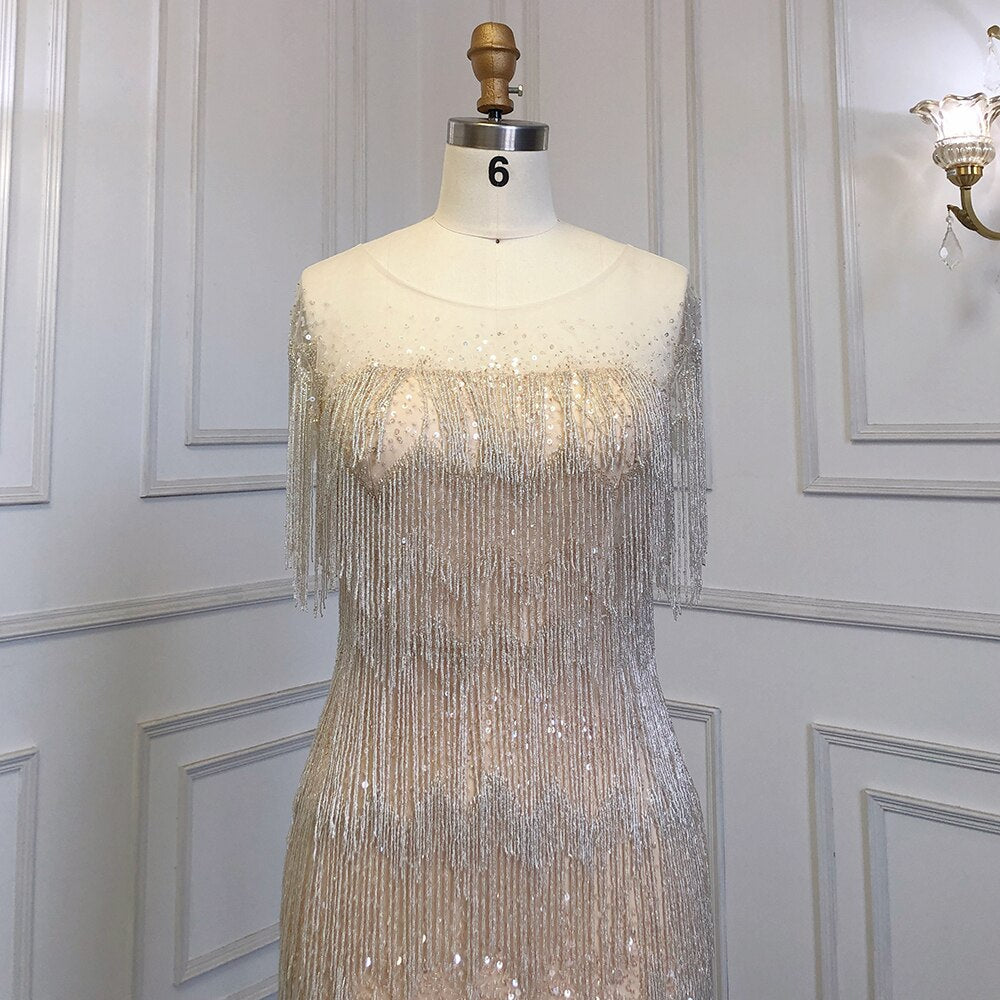 Gold Mermaid Sexy Short Skirt O-NeckElegant Dress Luxury Beaded Tassel Gowns 2025 For Women Party LA71734
