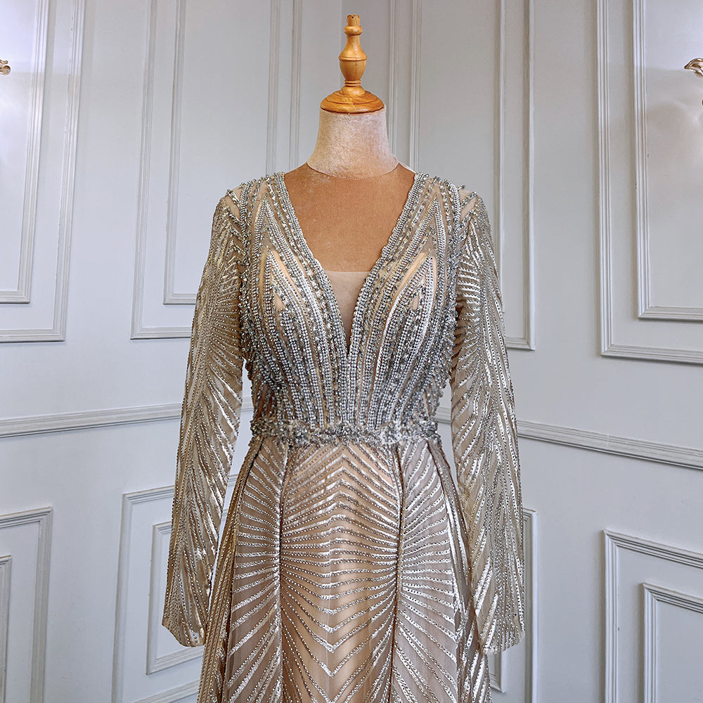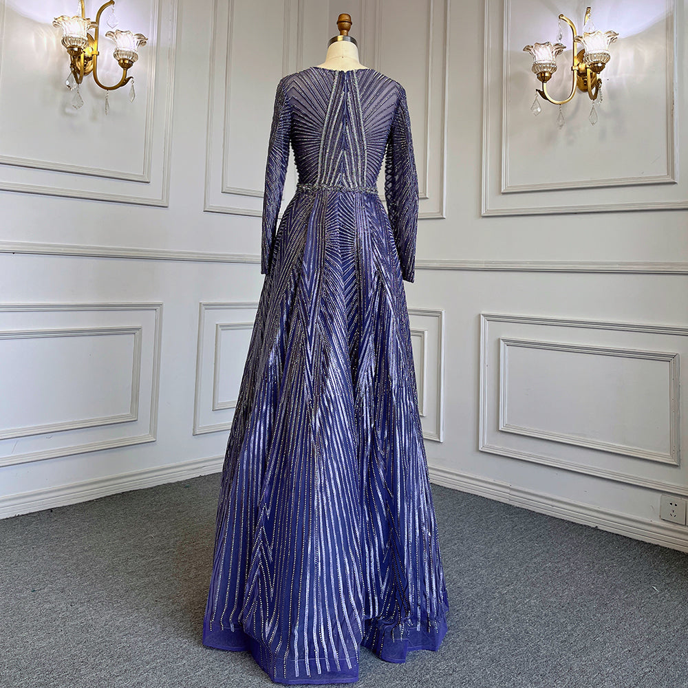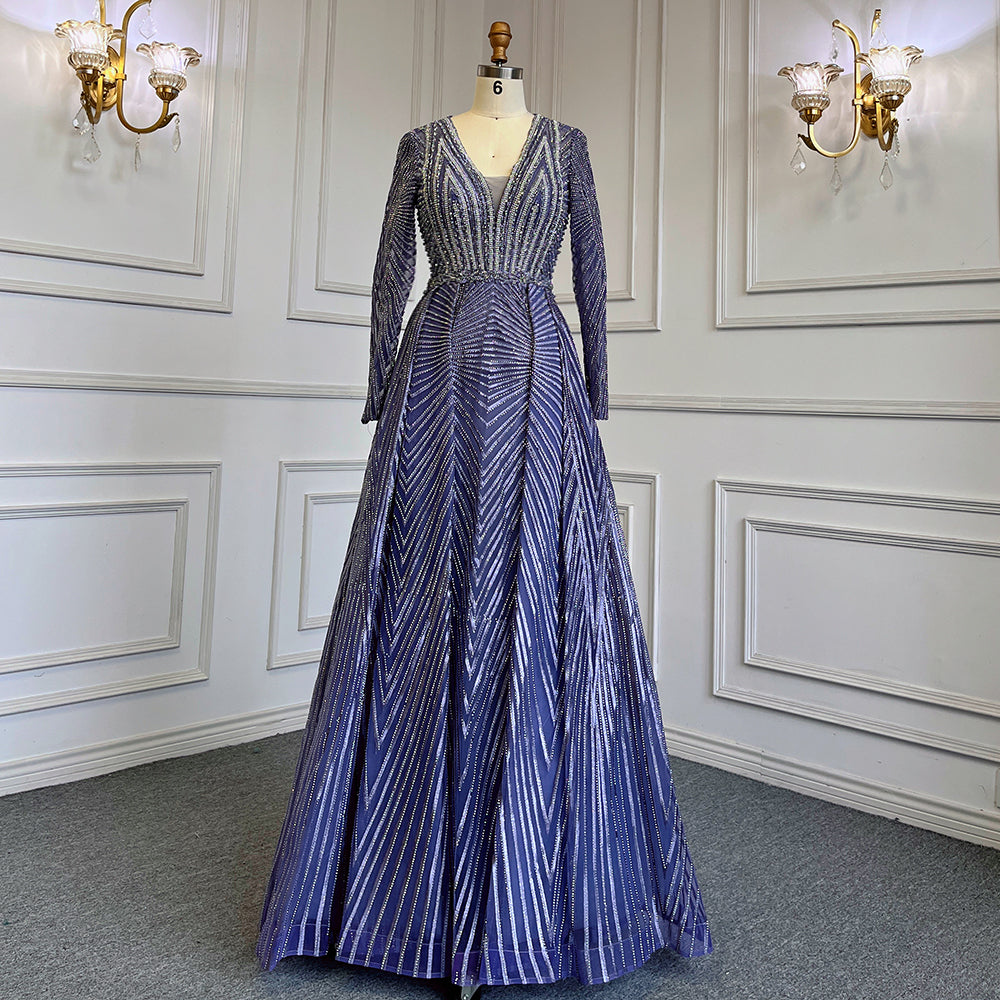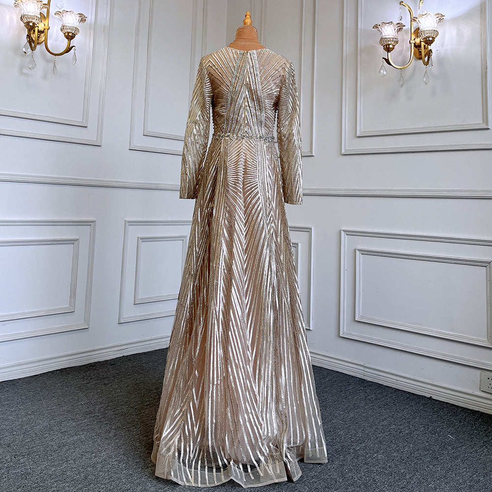 Gold Muslim A-Line V-Necck Evening Dresses Long Arm Gowns Luxury Beaded 2025 For Women Party LA71701
