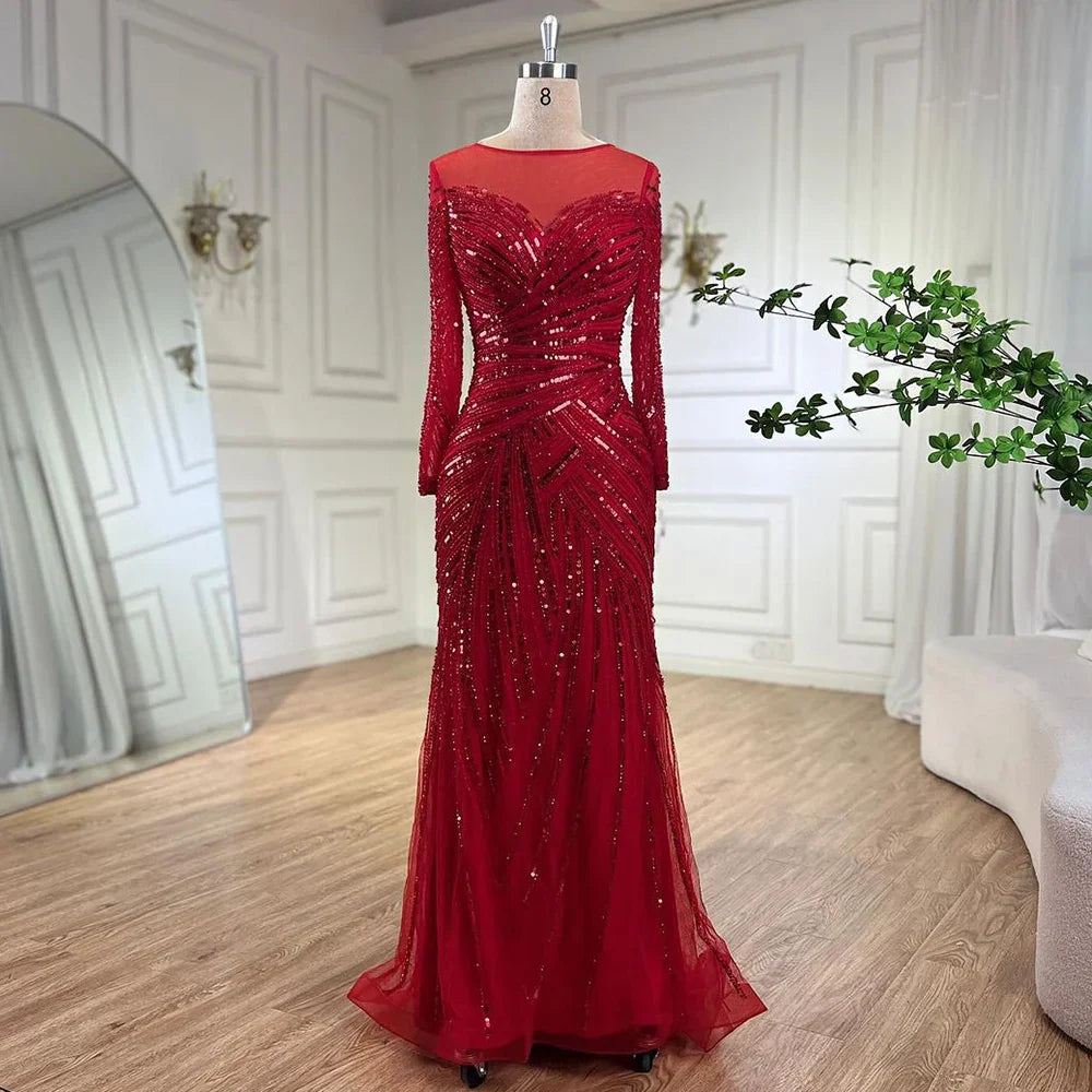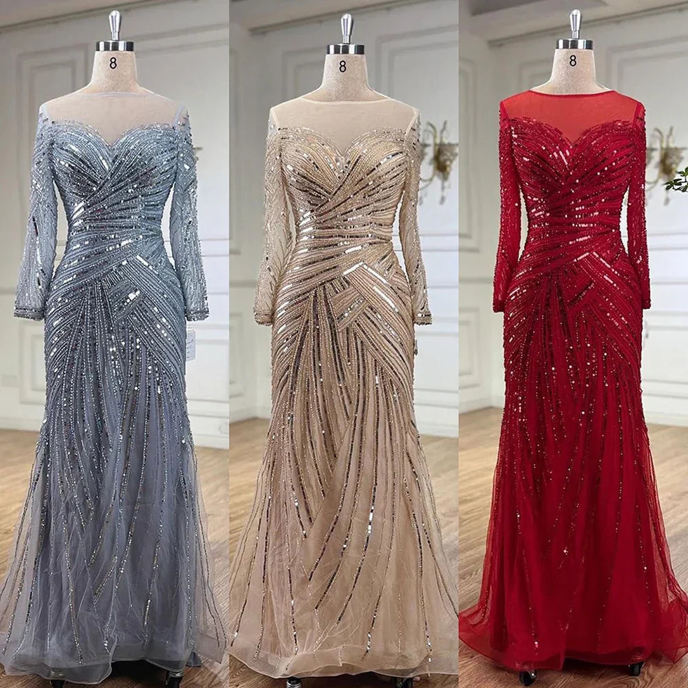 Gray Muslim Luxury Beaded Mermaid Evening Gowns Elegant Floor Length Party Dresses For Women Wedding 2025 LA72295