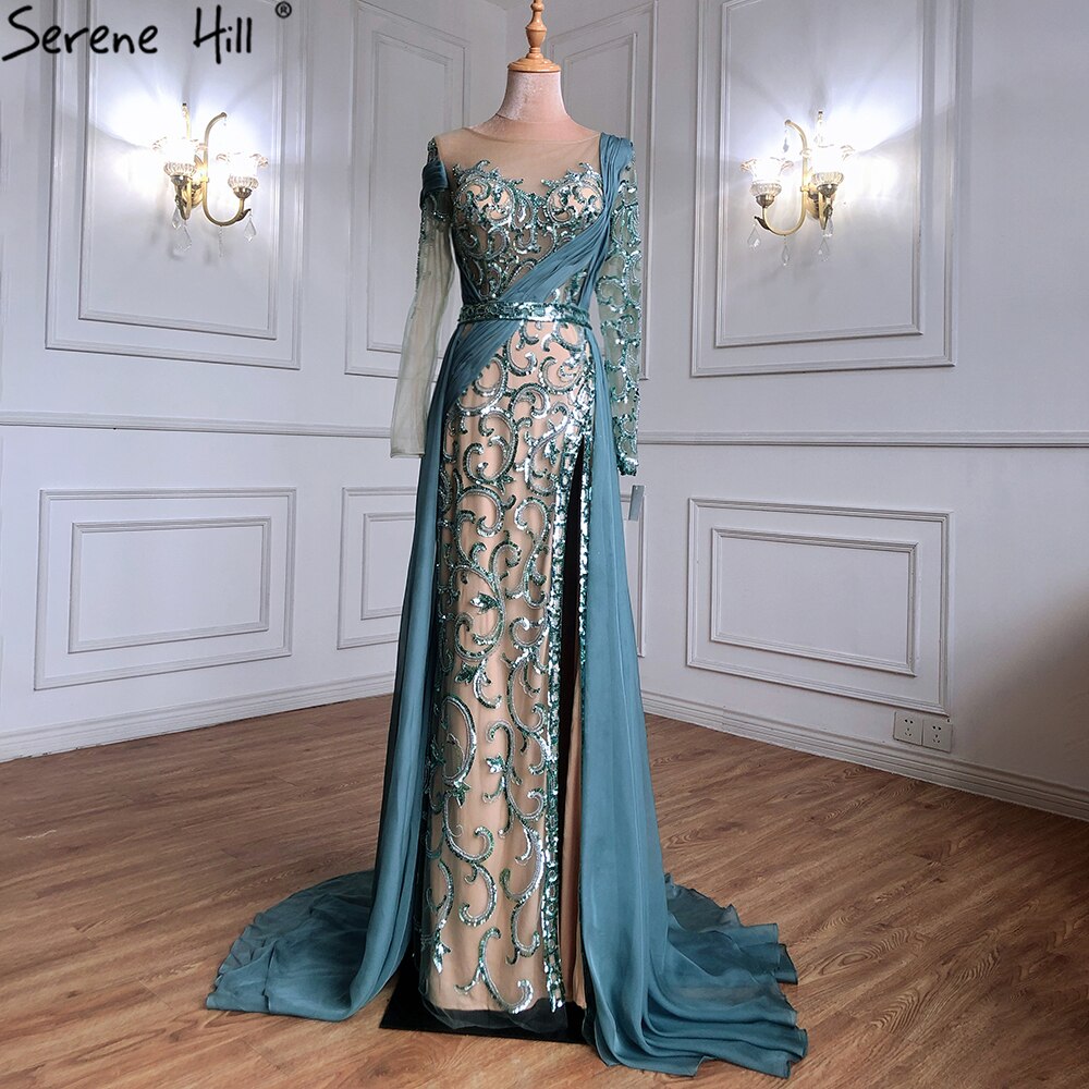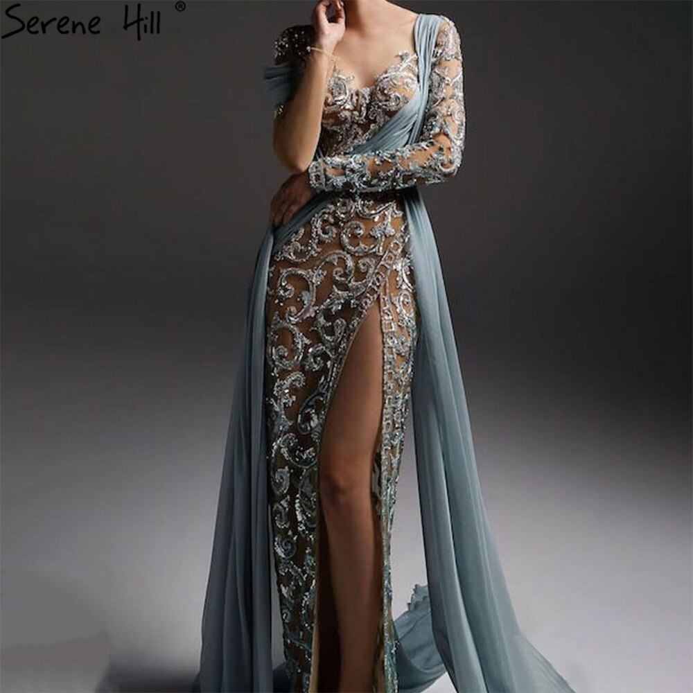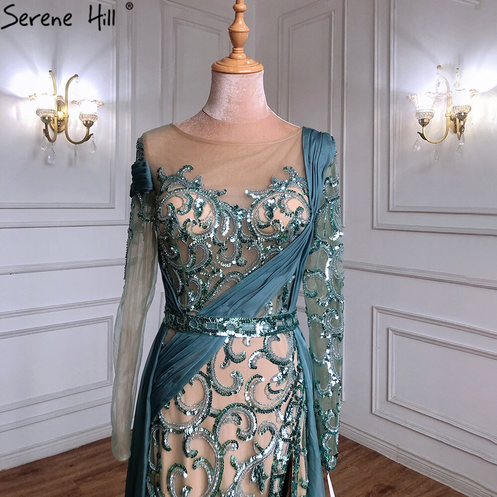 Green High Split Mermaid Evening Dresses Gowns 2025 Beaded Luxury Elegant For Woman Wedding Party LA71391