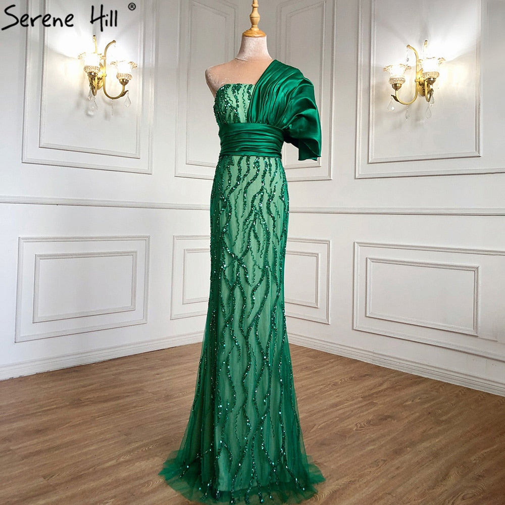 Green Mermaid With Train Evening Dresses Gowns 2025 Luxury Beading Elegant For Women Party LA71108