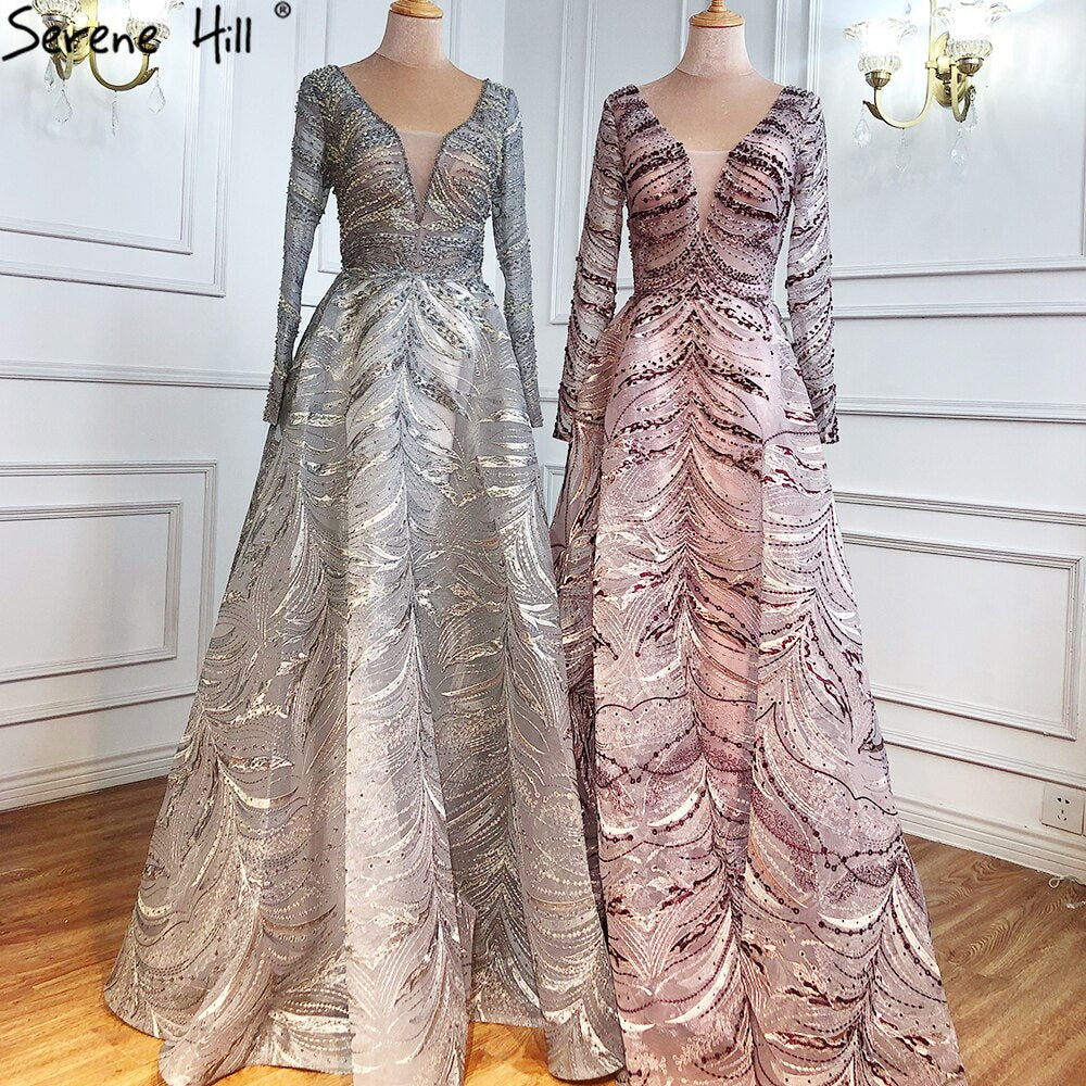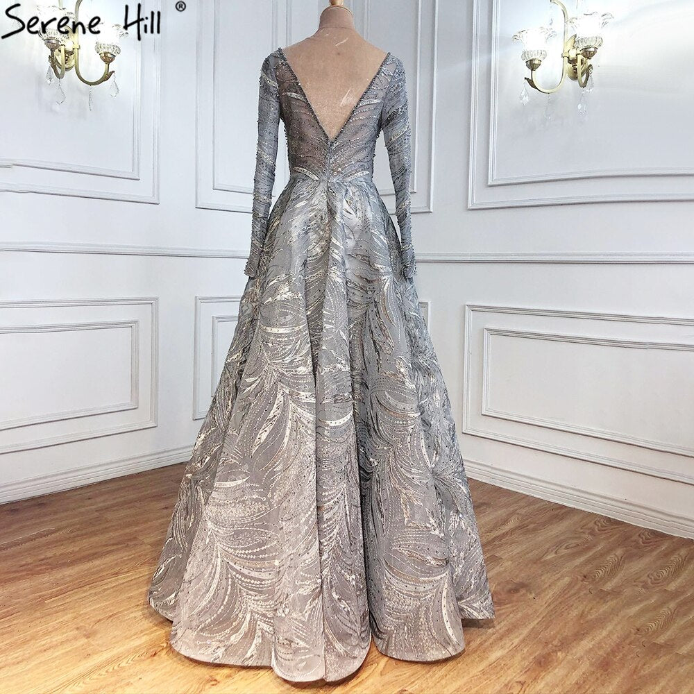 Grey A-Line Luxury Evening Dresses Gowns 2025 Lace Beaded Crystal Sexy For Woman Party LA71171