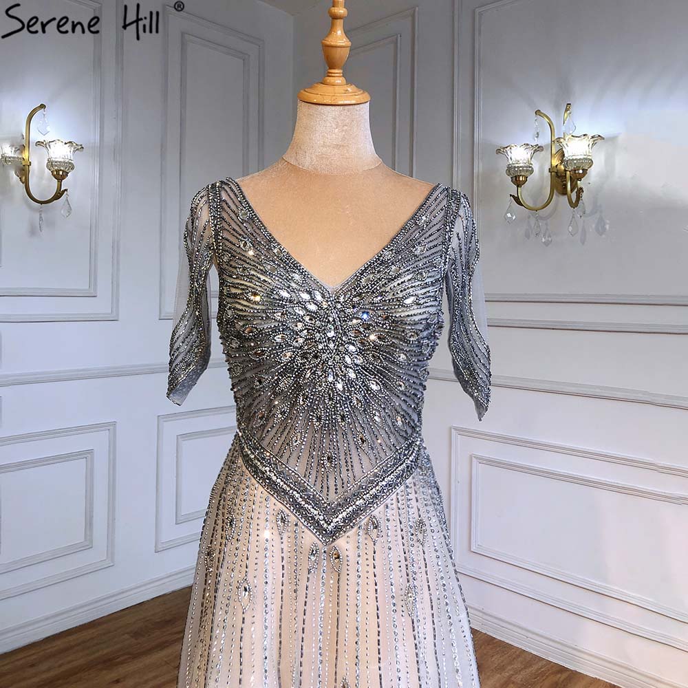 Grey Luxury A-Line Evening Dresses Gowns 2025 Short Sleeves Beaded Lace Up For Women Party LA71379