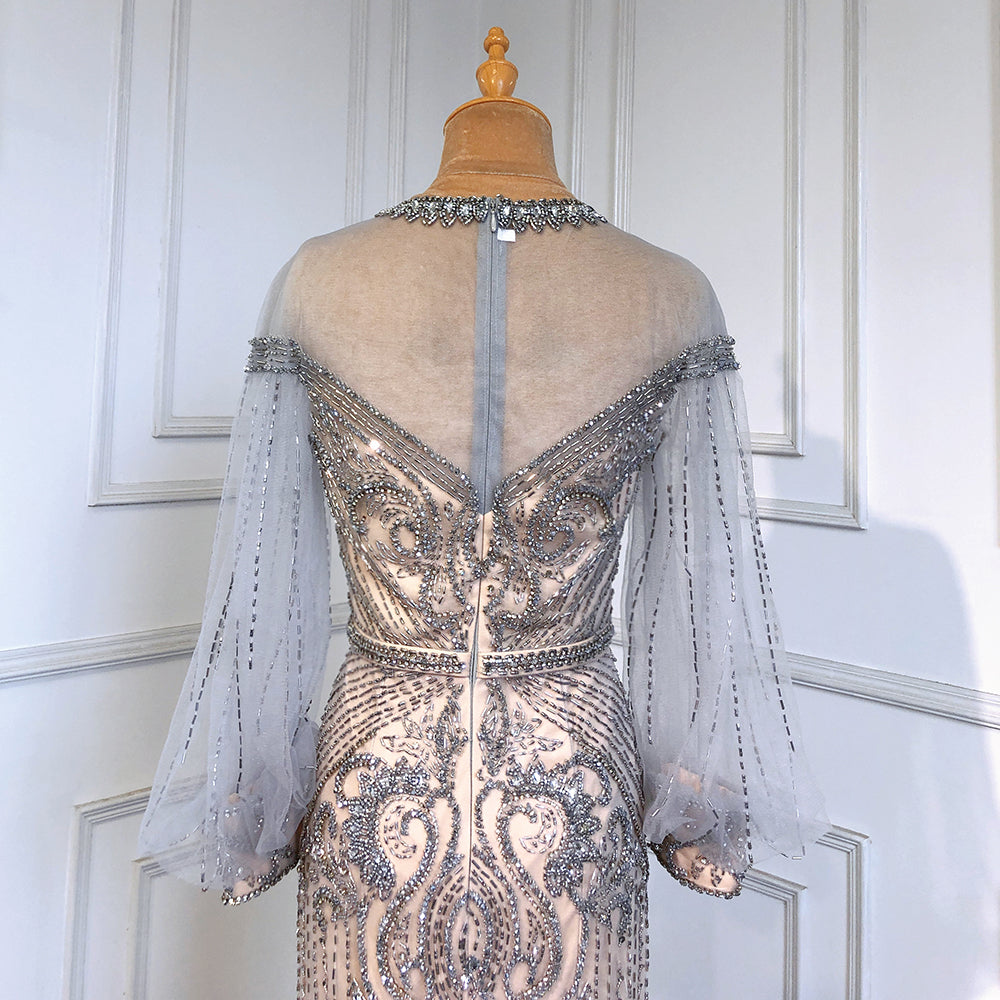 Grey Nude Luxury Evening Dresses Gowns 2025 Beaded Lantern Sleeve Mermaid Elegant For Women Party LA71603