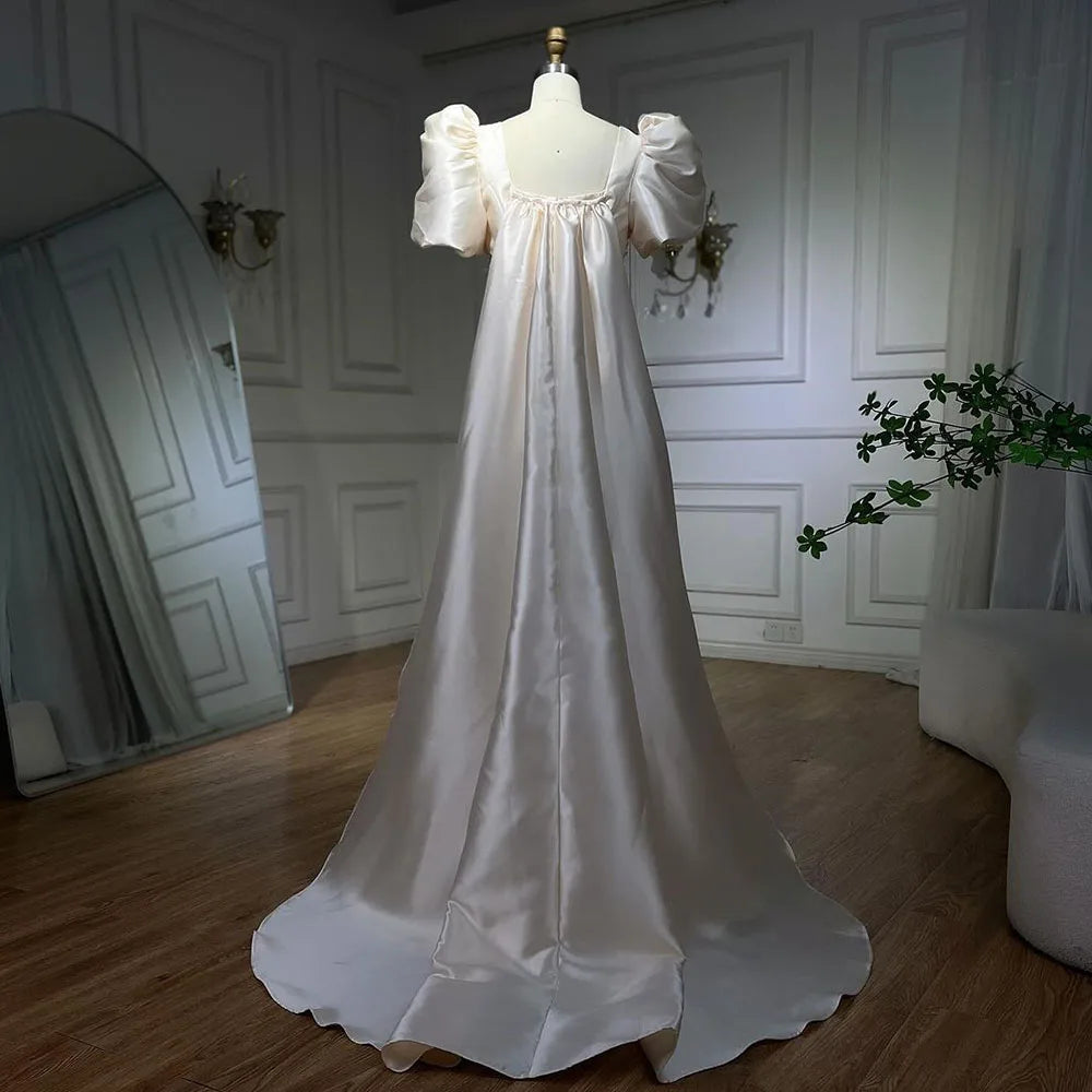 Ivory Satin Mermaid Strapless Puff Sleeves Crystal Beaded Evening Dresses Gowns For Women Wedding Party 2025 LA72217