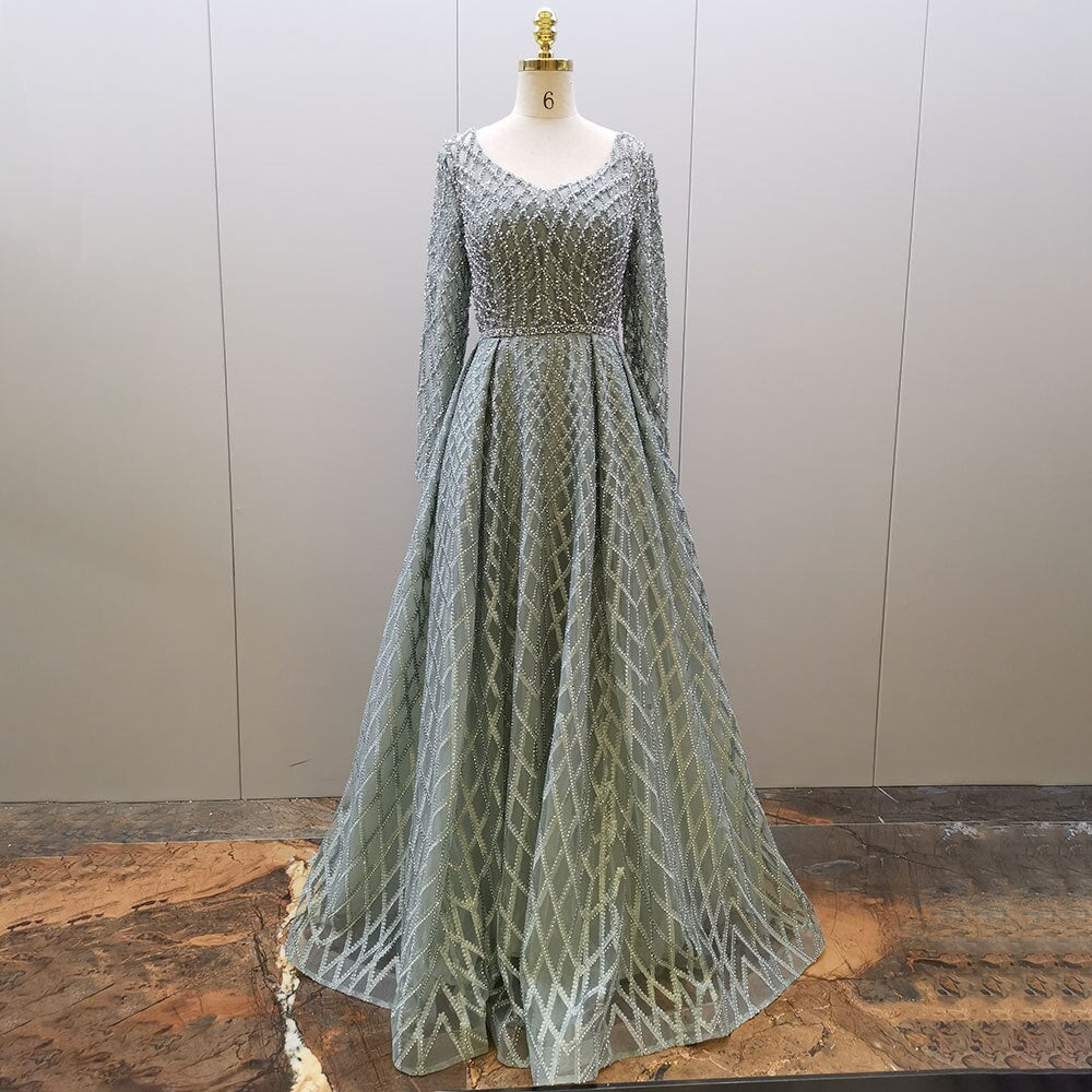 Muslim Pink A Line Luxury Beaded Sexy Sweetheart Evening Dresses Gowns For Women Party 2025 LA71811