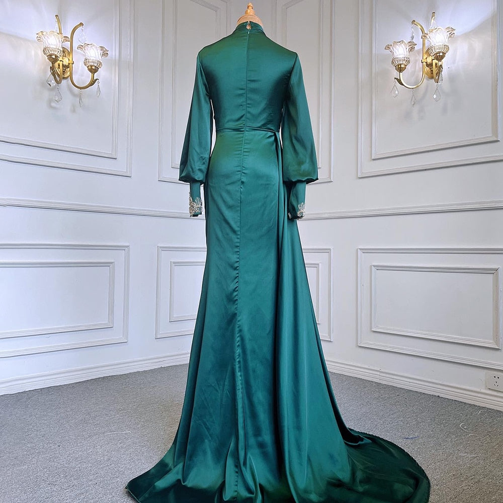 Muslim Satin Green Beaded Elegant With Skirt Mermaid Evening Dresses Gowns 2025 For Women Party LA71532