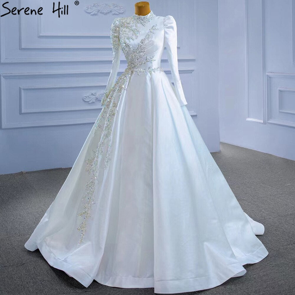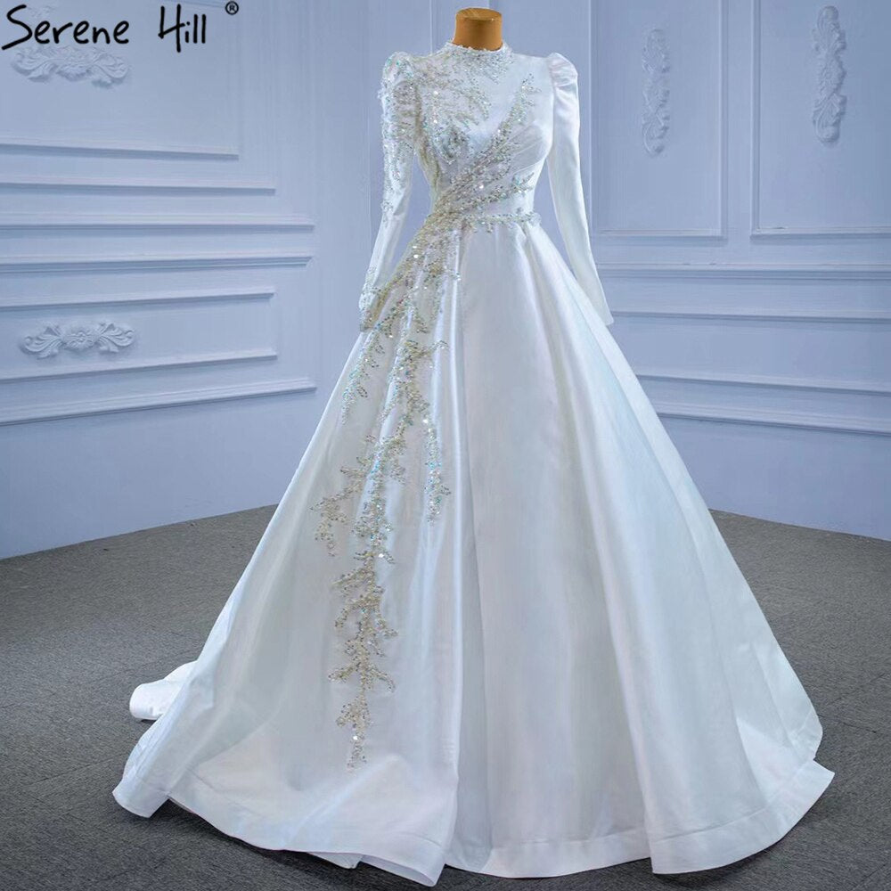 Muslim White A-Line Wedding Dresses 2025 Beaded High-end Satin Bride Gowns HM67396 Custom Made