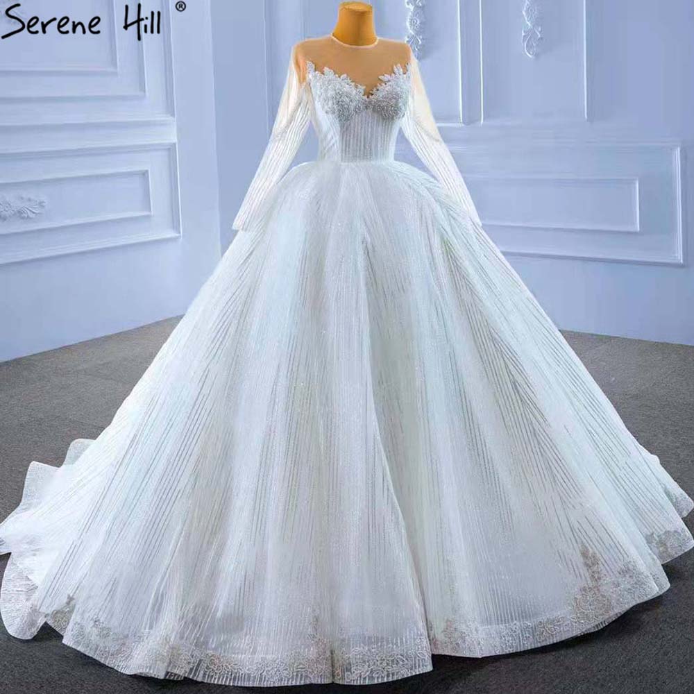 Muslim White Luxury Wedding Dresses 2025 Beaded Lace Up High-end Bride Gowns HM67388 Custom Made
