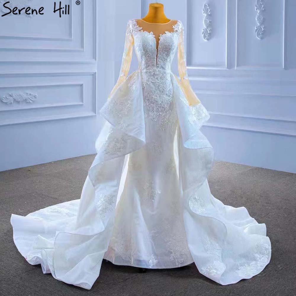 Muslim White OverSkirt Wedding Dresses Gowns 2025 Mermaid Elegant Lace High-end Bridal Dress HM67416
