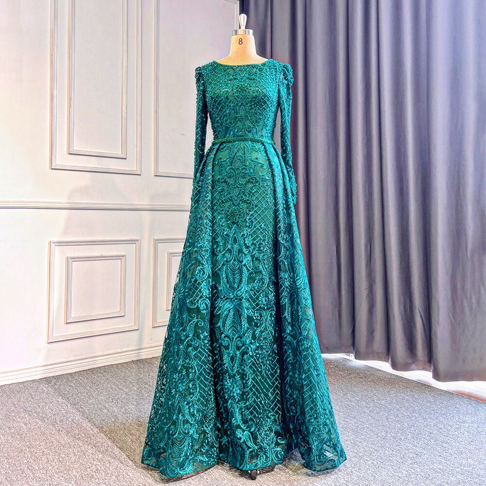Muslim Wine Red Mermaid Elegant O Neck Luxury Beaded Evening Dresses Gowns 2025 For Woman Plus Size LA70406