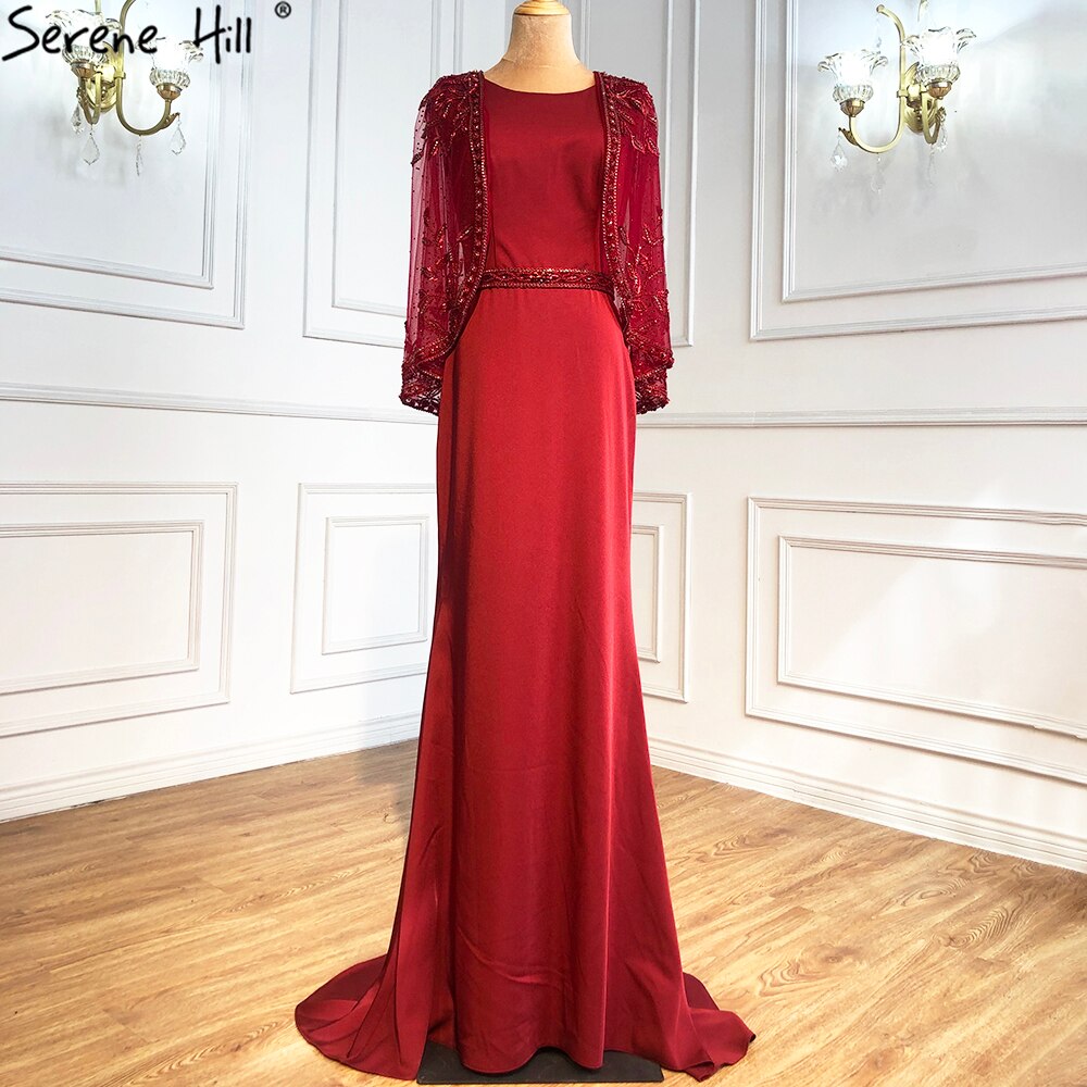 Navy Blue Mermaid Elegant Evening Dresses Gowns 2025 Satin Beading Shawl Yarn Sexy For Women Party LA70884