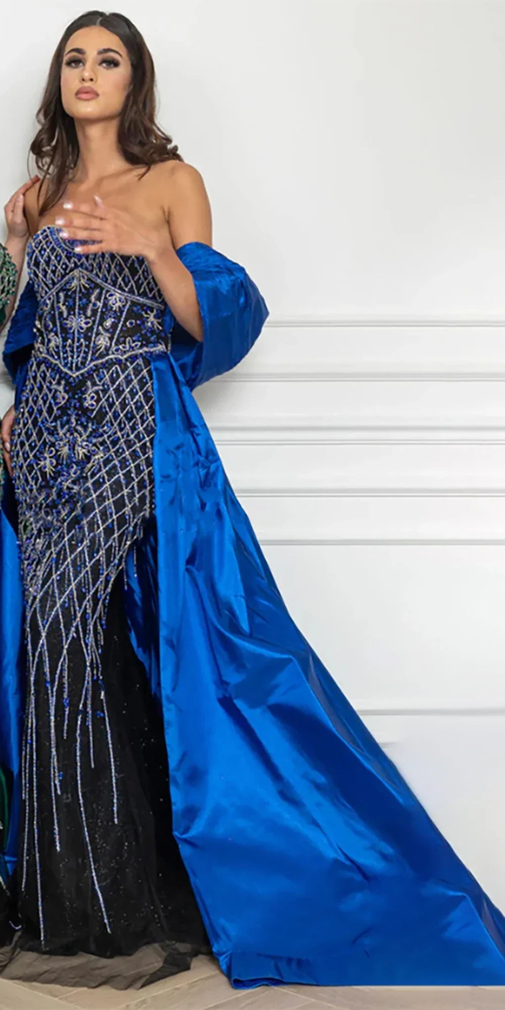 Nude Beaded Mermaid Evening Gown Off Shoulder Shawl Crystal Detailing for Formal Occasion 2025 LA72819