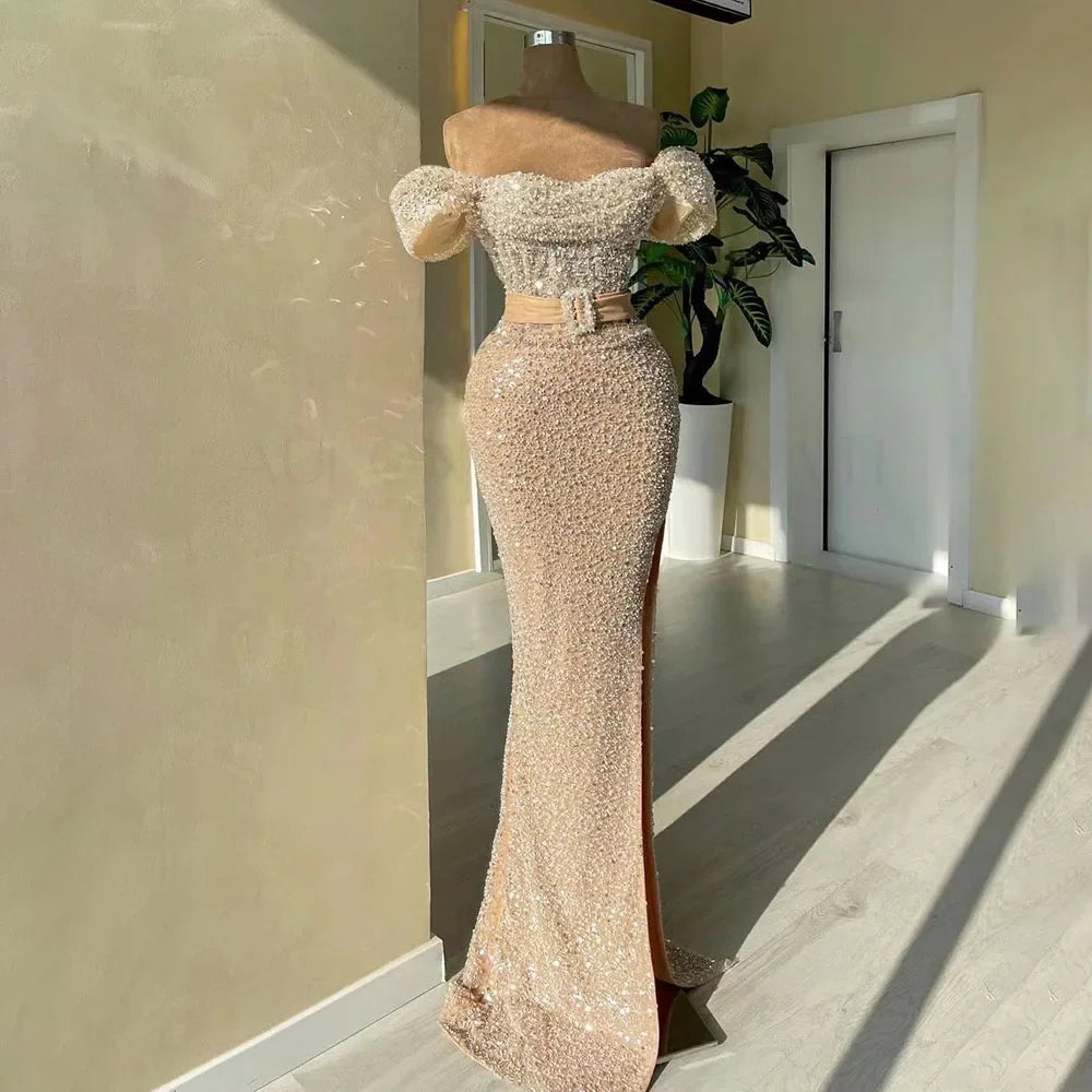 Nude Mermaid Elegant Boat Neck Beaded Luxury Dubai Evening Dresses Gowns For Women Wedding Party 2025 LA72318C