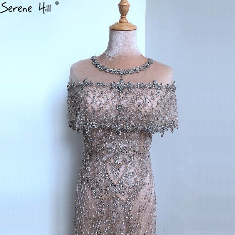 Nude Mermaid Luxury Evening Dresses For Woman 2025 Dubai Diamond Sequins Formal Dress LA70519