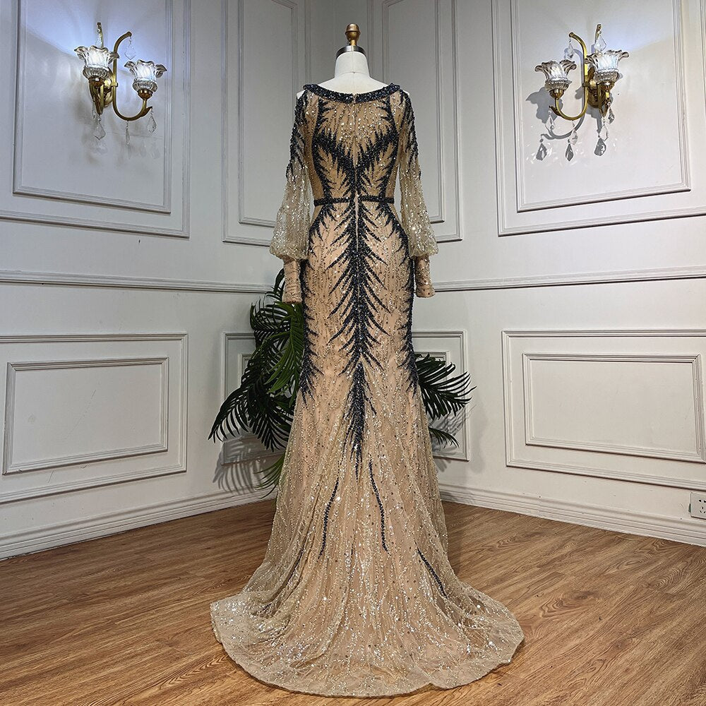 Nude O-neck Long Sleeves Cold Shoulder Evening Dresses Mermaid Beaded Party Gowns For Women LA72008