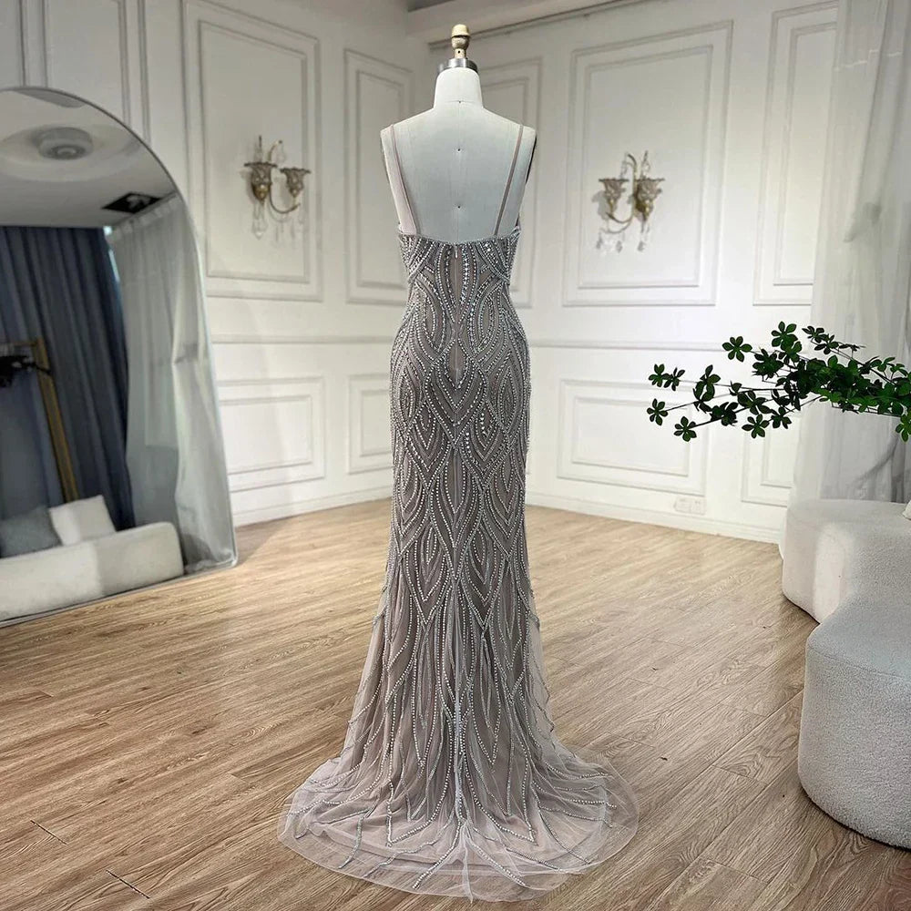 Nude White Mermaid Evening Dresses Gowns 2025 Spaghetti Strap Luxury Elegant For Women Party LA70214