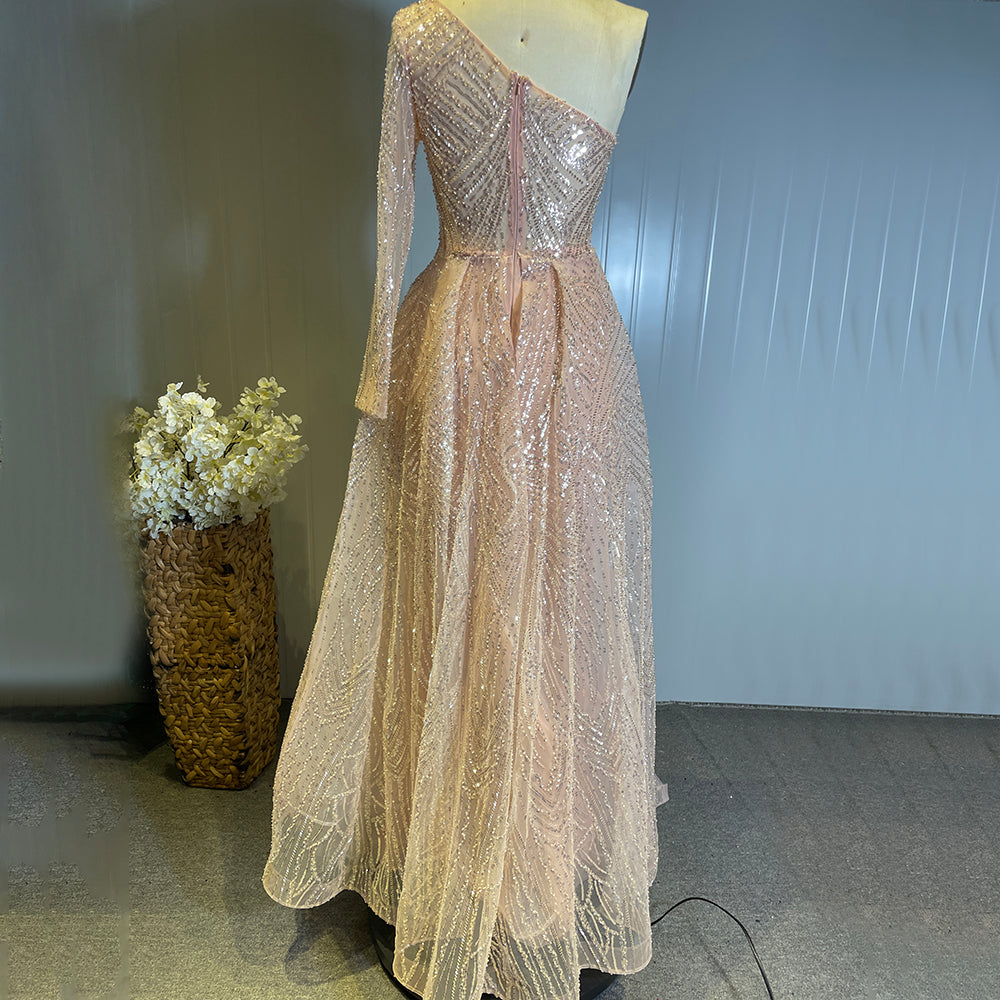 Peach Mermaid Overrok Luxe Avond Jurken 2025 Kralen Elegante Sexy Voor Vrouwen Party LA71563