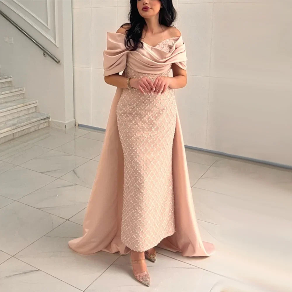 Made with high-quality materials. it features an off-shoulder design and a stunning cape. perfect for making a statement at any evening event. Stand out with this luxurious dress.