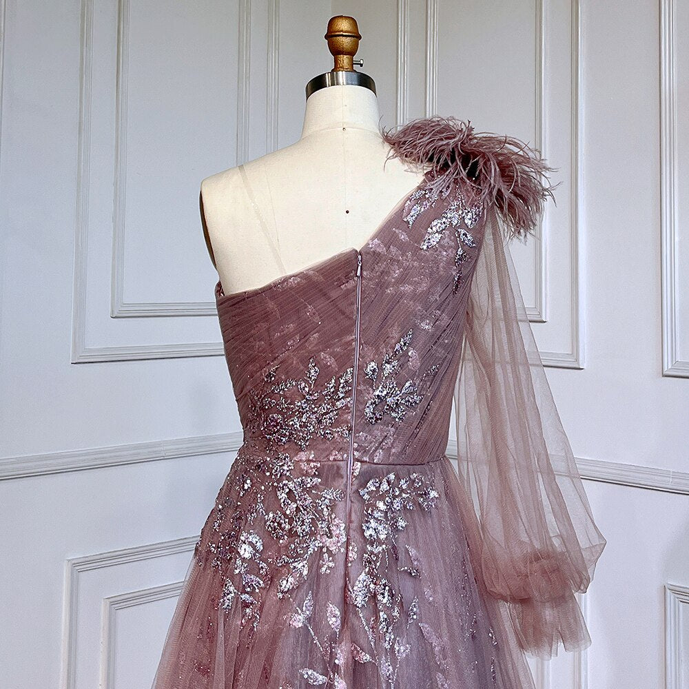 Pink A-Line Split Luxury Evening Dresses Gowns 2025 Beaded Elegant Feathers One Shoulder For Women Party LA71689