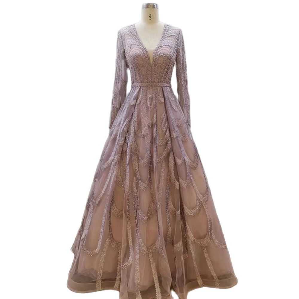 Pink Beaded Muslim Evening Dresses Gowns 2025 Luxury A-Line Puff Sleeve For Women Party LA71758