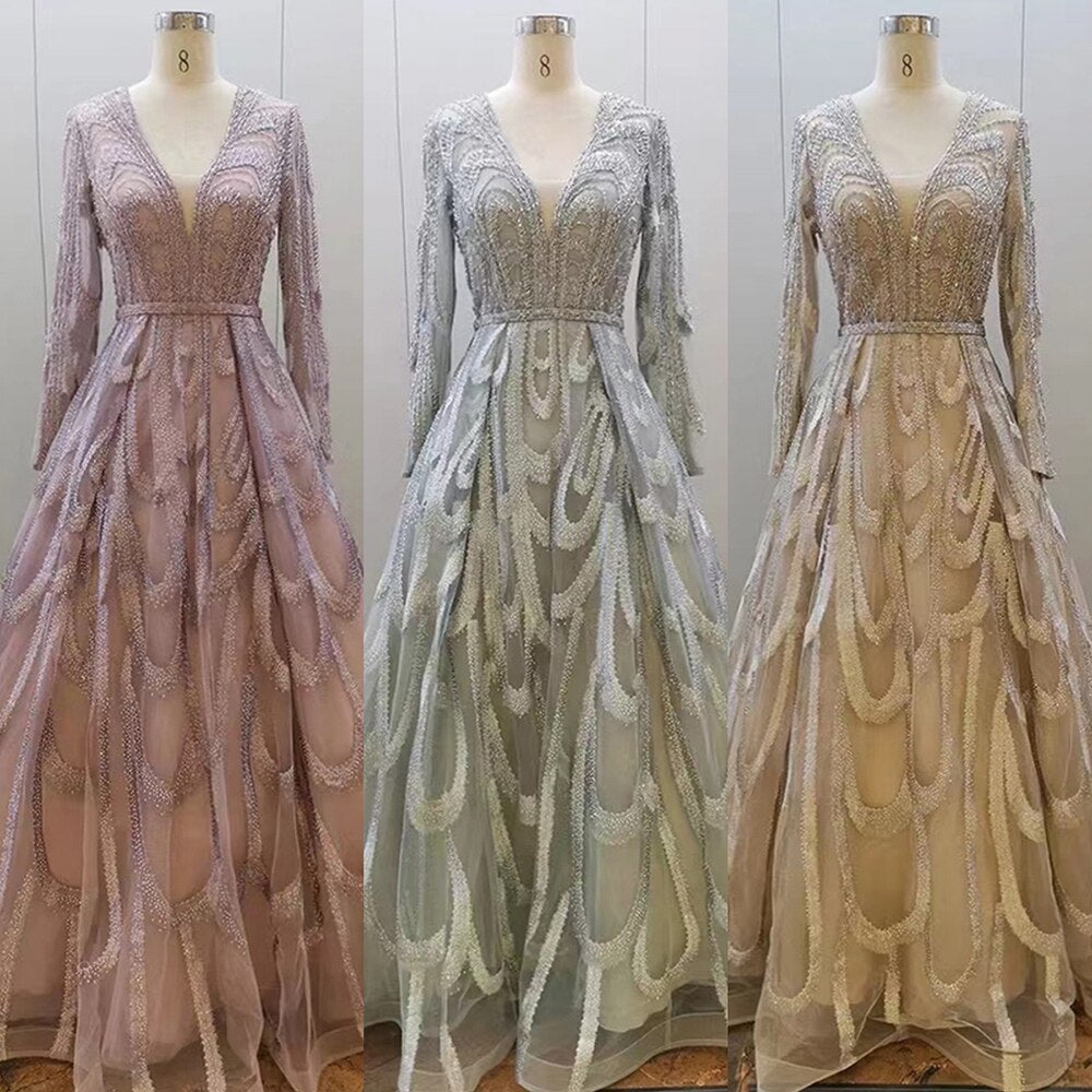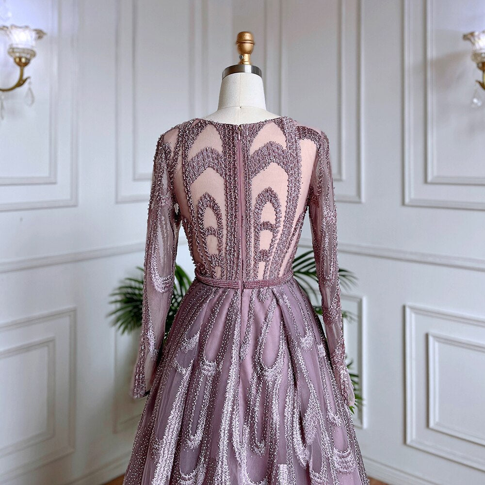 Pink Beaded Muslim Evening Dresses Gowns 2025 Luxury A-Line Puff Sleeve For Women Party LA71758
