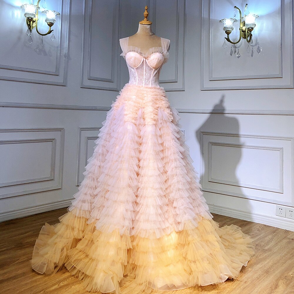 Pink Corset With a Ruffled Ombre Ballcown Prom Dresses 2025 Sexy Girls Graduation Party Gown LA71221