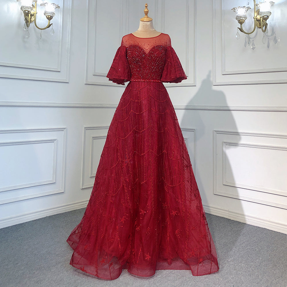 Pink Luxury A-Line Evening Dresses Gowns 2025 Flare Sleeves Beaded For Women Party LA71600
