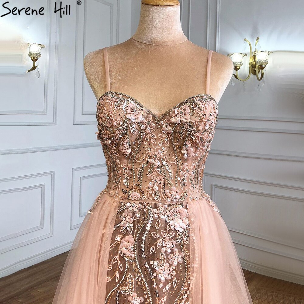 Pink Luxury Overskirt Evening Dresses Gowns 2025 Spaghetti Strap Beaded Mermaid For Woman Party LA71216
