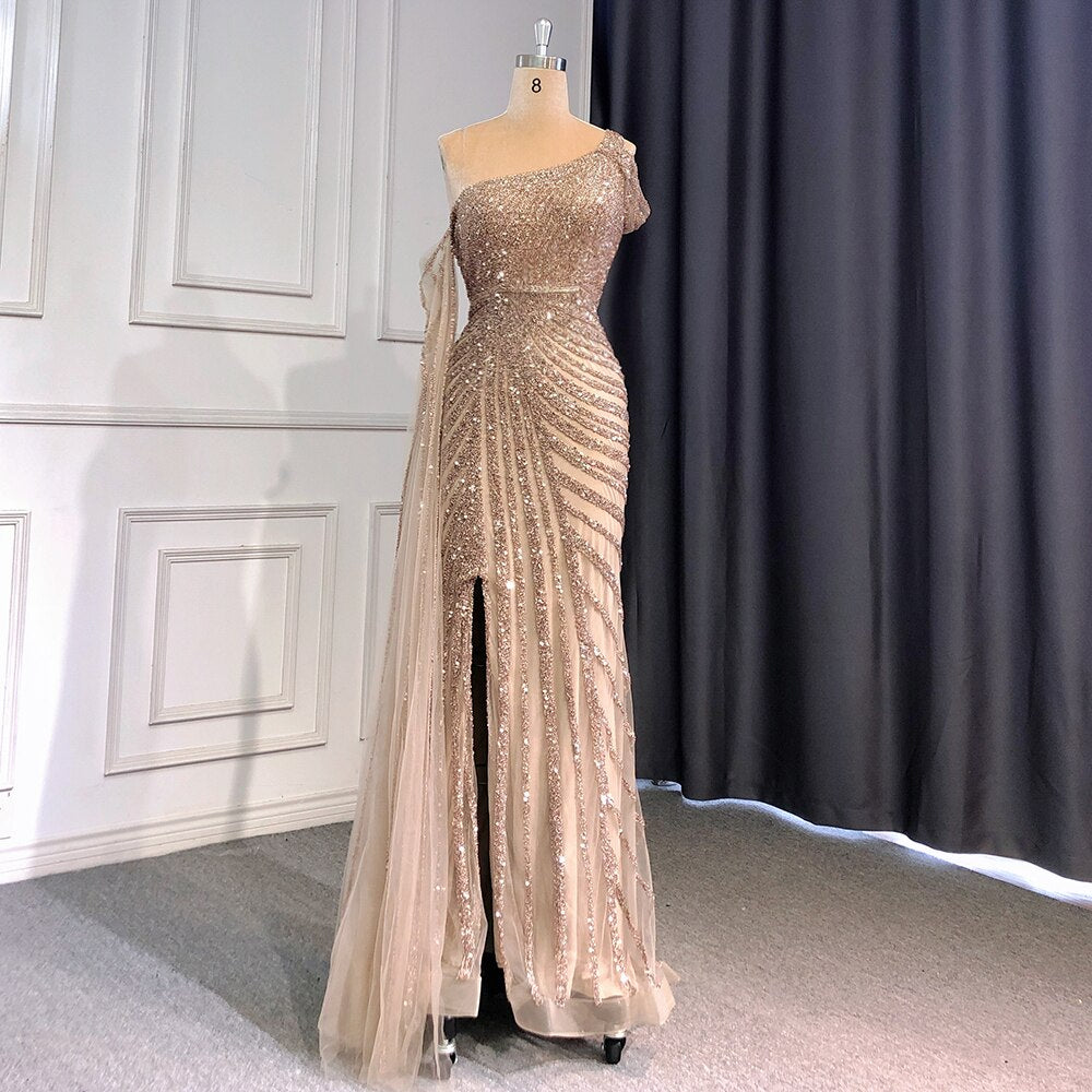 Pink One-Shoulder Cape Sleeve Evening Dresses Gowns 2025 Luxury Mermaid Beaded Elegant For Women Party LA71589