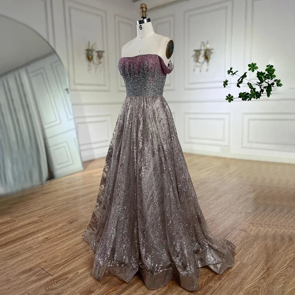 Pink Spaghetti Strap A Line Beaded Luxury Dubai Long Evening Dresses Gowns for Woman Wedding Party 2025 LA72507
