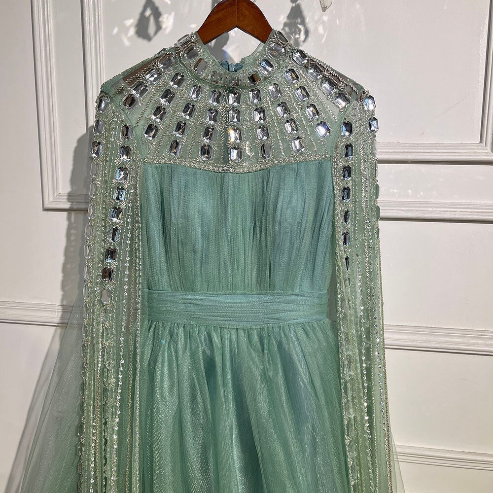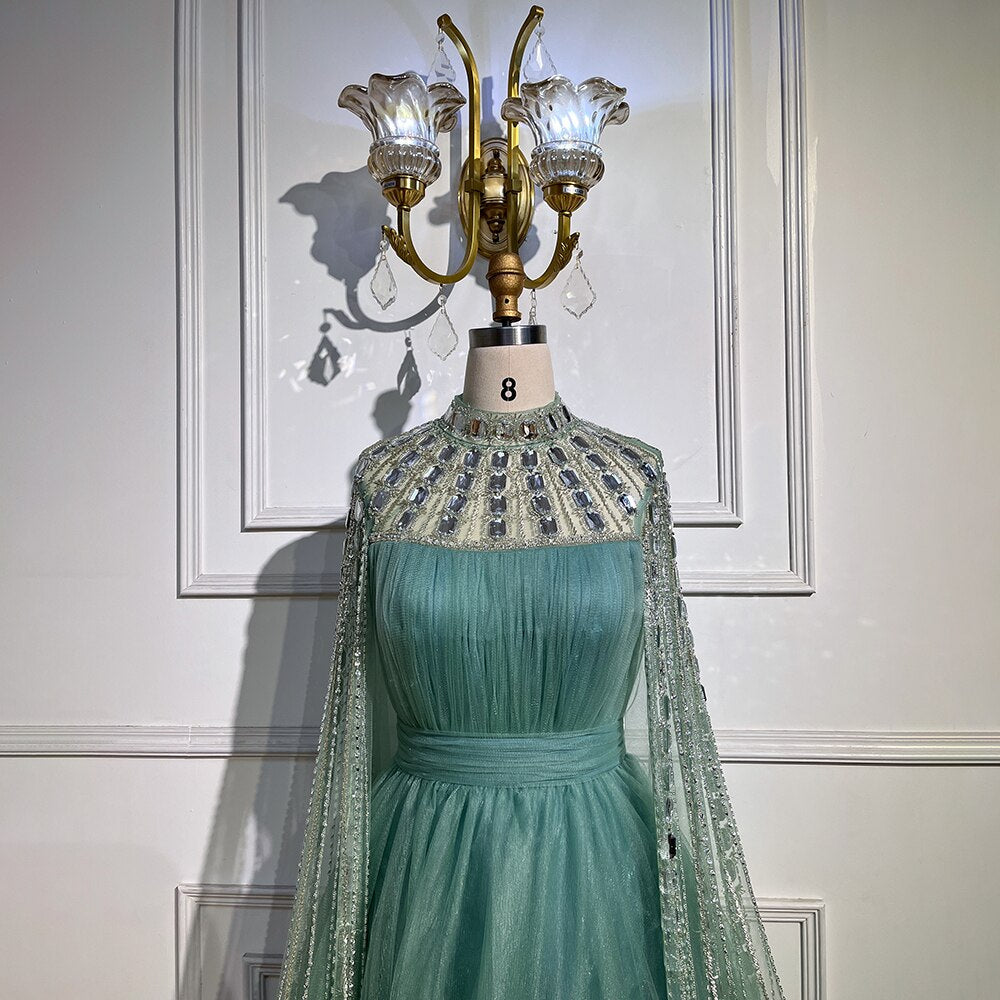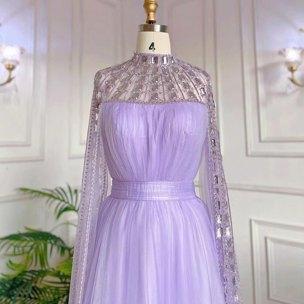 Purple Arabic A-Line Beaded Sexy Luxury Cape Sleeves High Neck Evening Dresses Gowns 2025 For Women Party LA71764