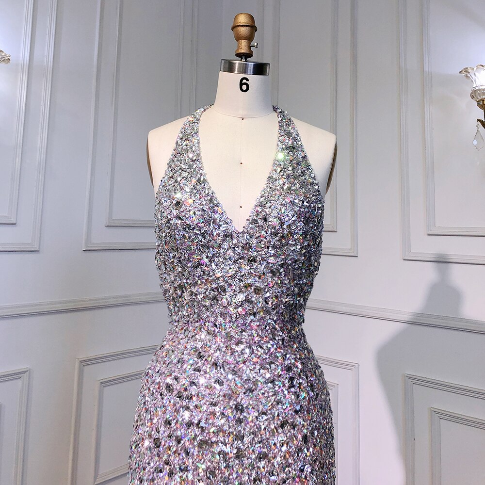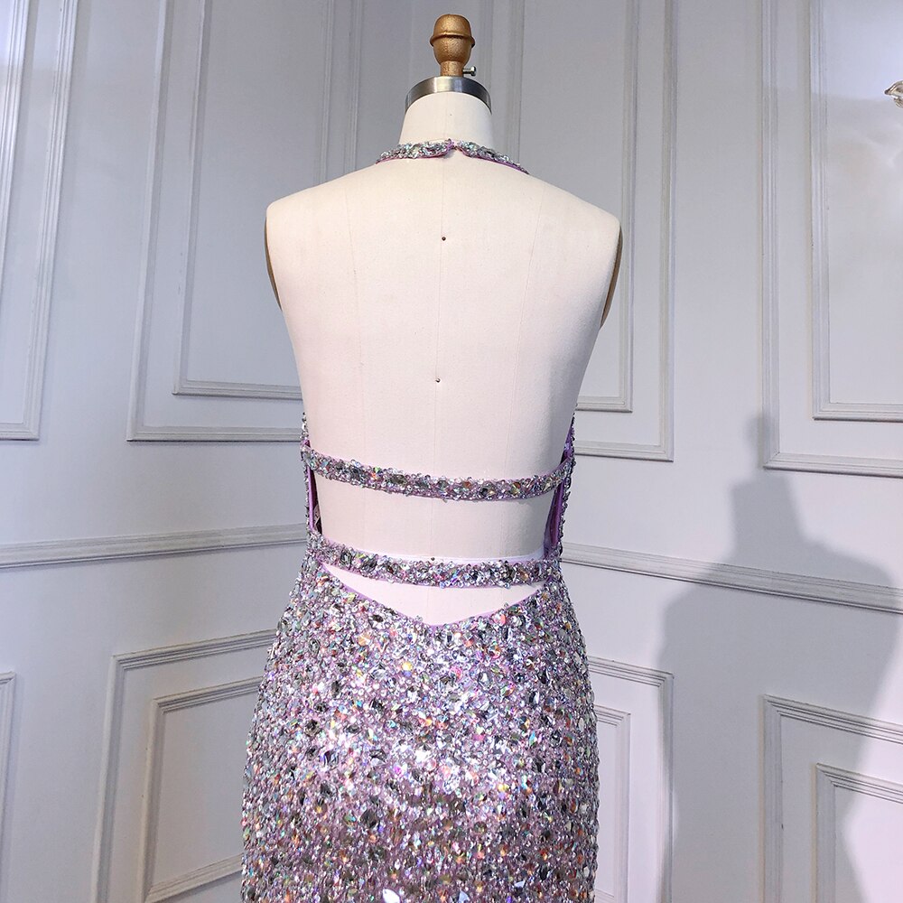 Purple Mermaid Elegant Sexy Spaghetti Straps Evening Dresses Gowns Luxury Feather Shiny Beaded 2025 Woman LA71736