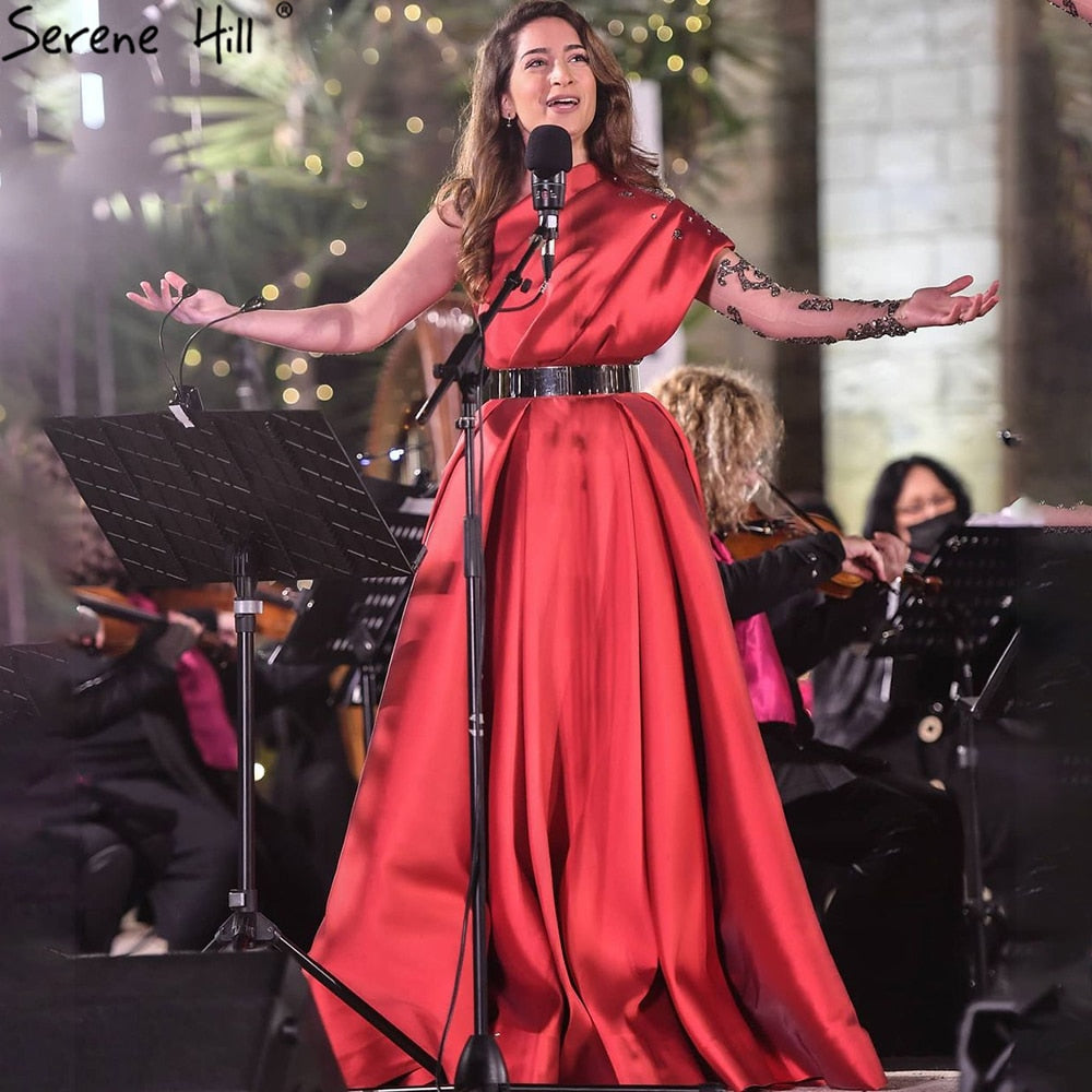 Red Beaded Satin A-Line Sexy Evening Dresses Gowns 2025 One Shoulder For Woman Party LA71136