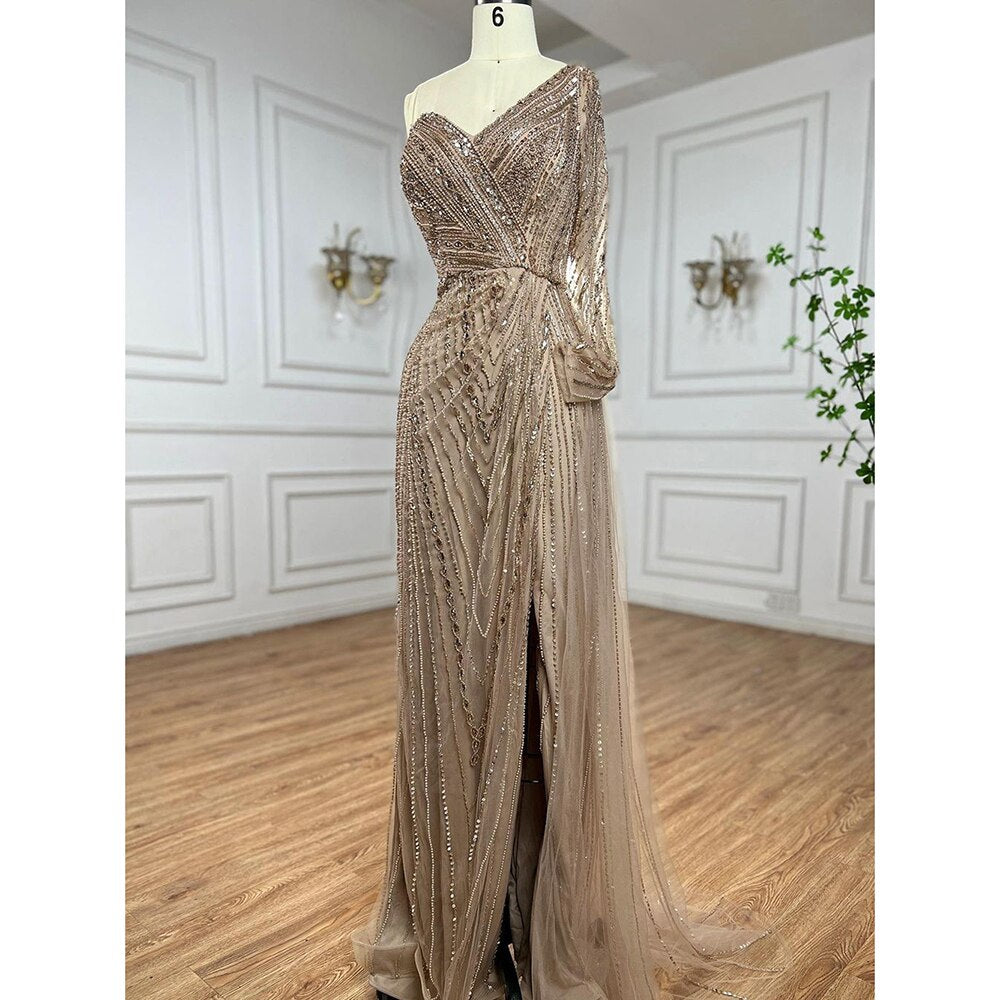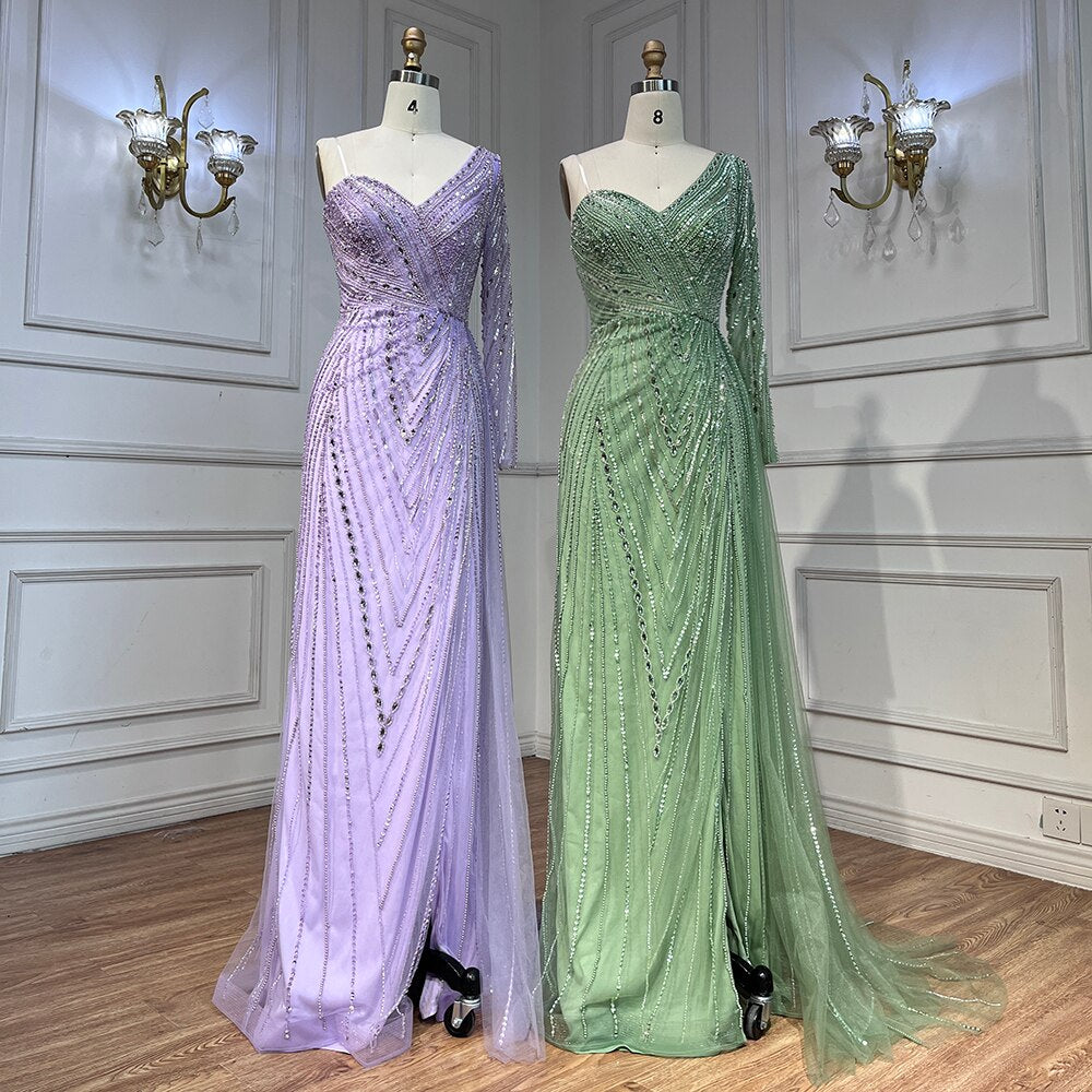 Sexy One Shoulder Split Mint Mermaid Beaded Arabic Evening Dresses Gowns For Woman Wedding Party 2025 LA71859