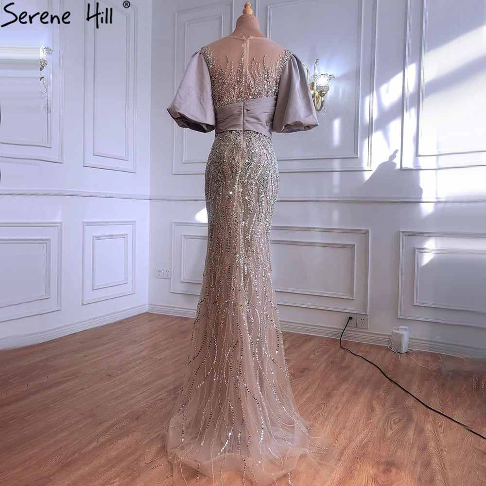 Silver Nude Luxury Mermaid Beading Evening Dresses Gowns Puffy Sleeves Elegant For Women Party LA70809