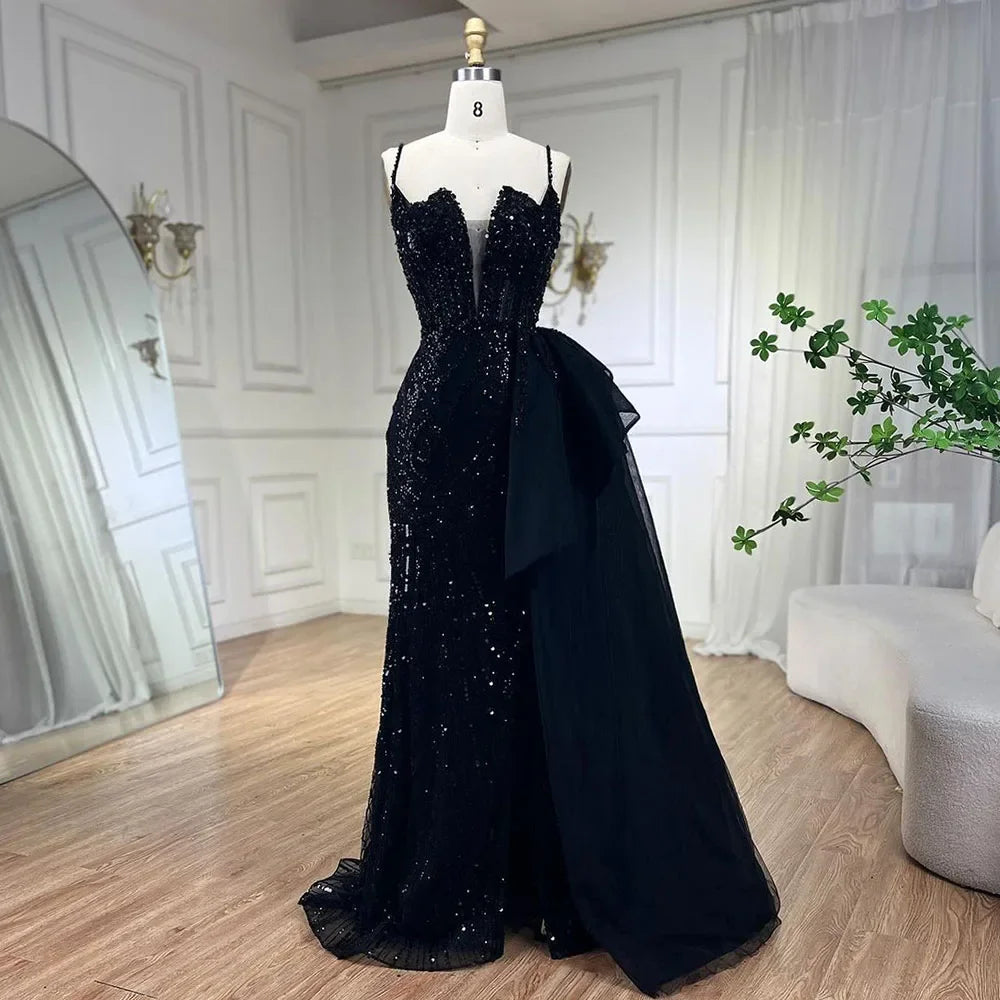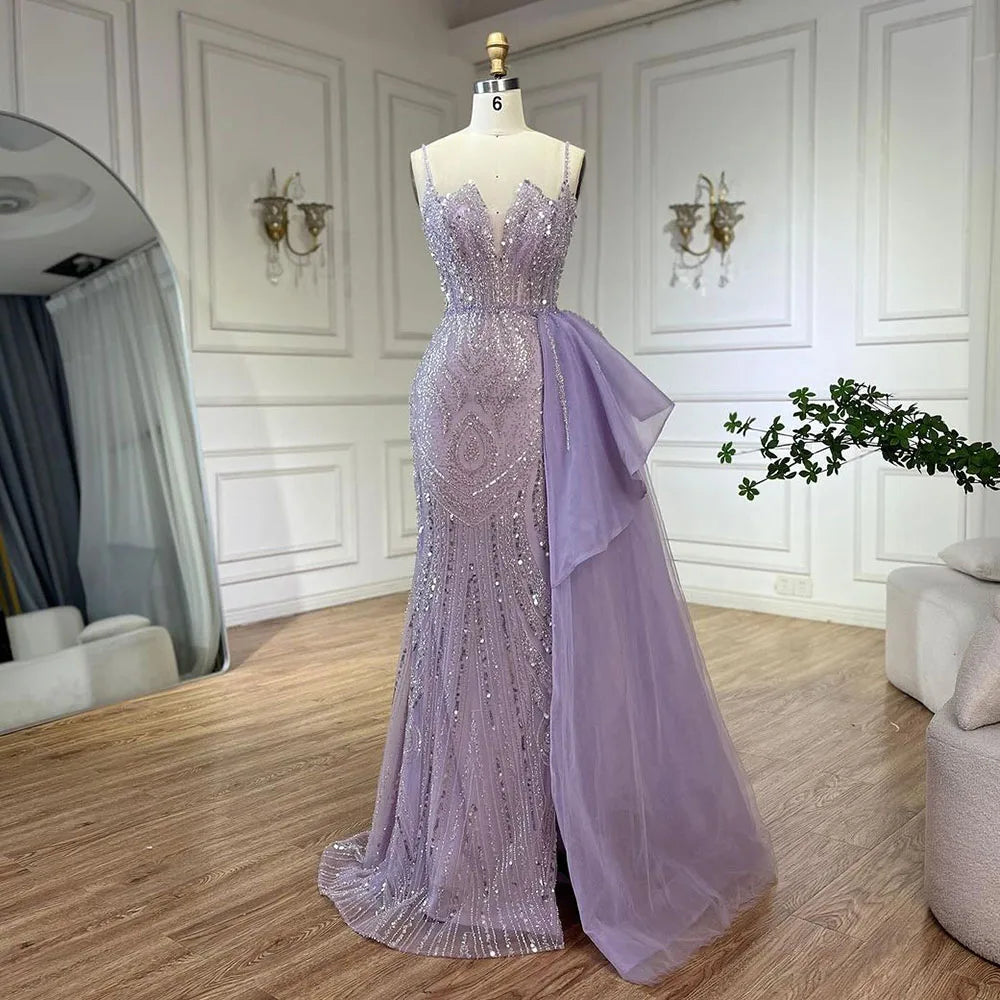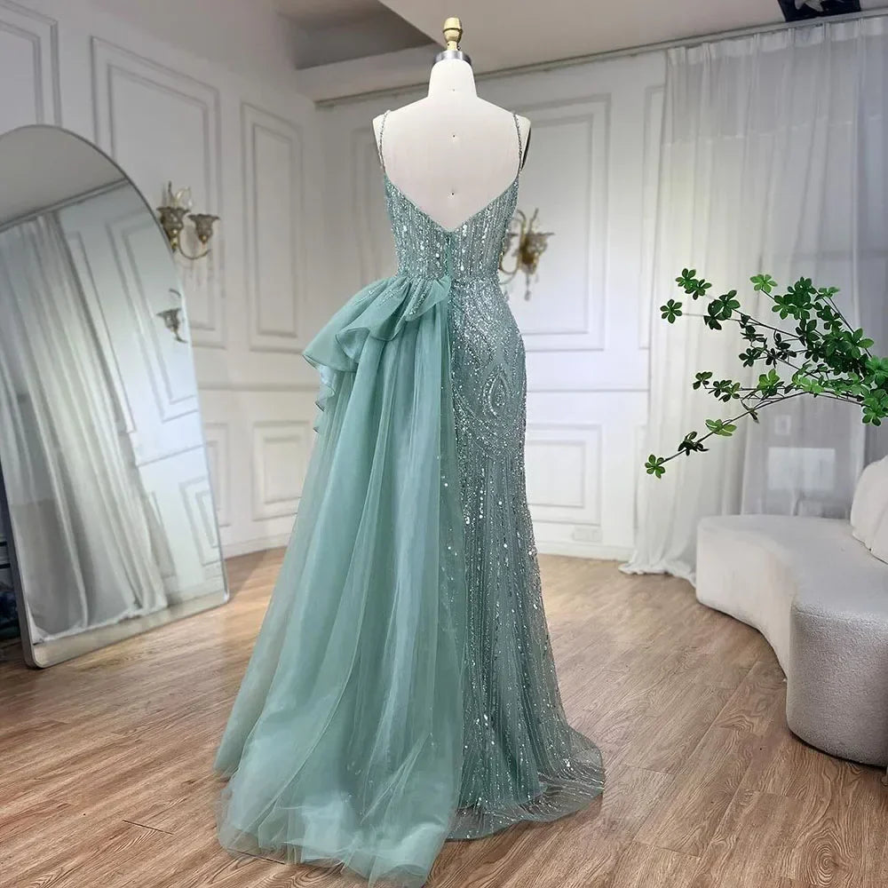 Sky Blue Spaghetti Strap Luxury Evening Dresses Gowns 2025 Mermaid Beaded Elegant Overskirt For Women Party LA72378