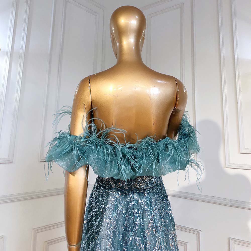 On Sale no return no refund Turquoise A-Line Luxury Evening Dresses Gowns 2025 Feather Beaded Sweetheart For Women Party LA71497