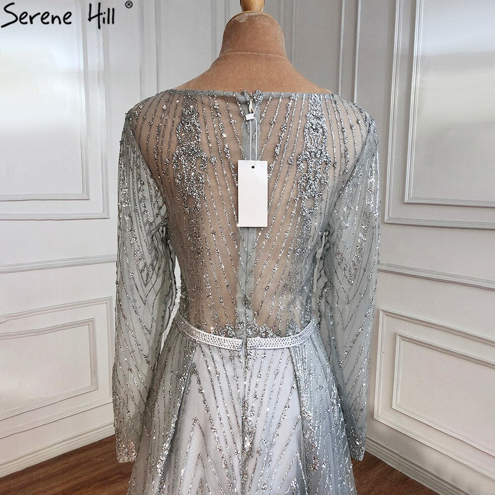 Muslim Luxury Grey Evening Dresses Gowns 2025 A-Line Beading Long Sleeves For Woman Wedding Party LA70819